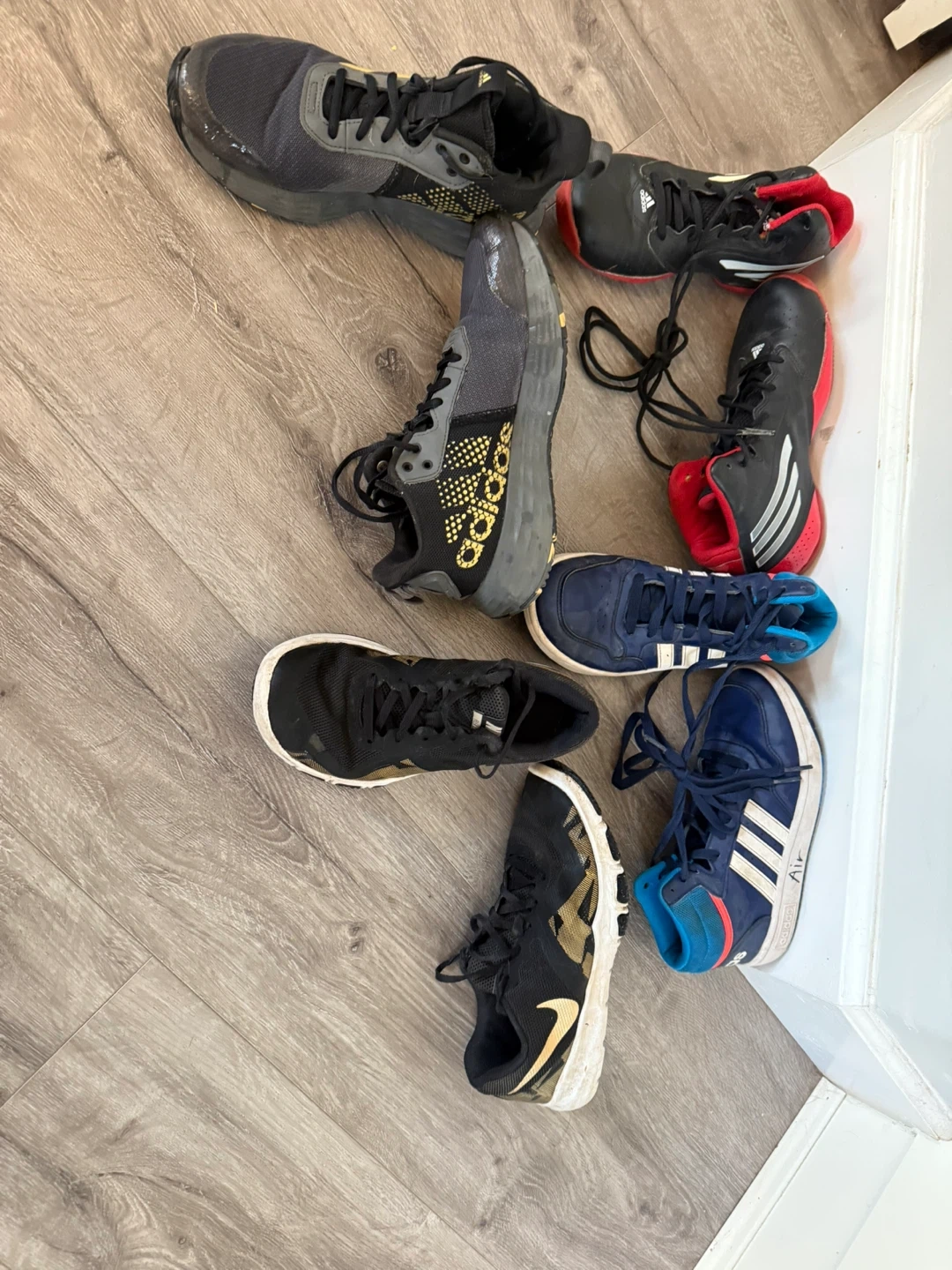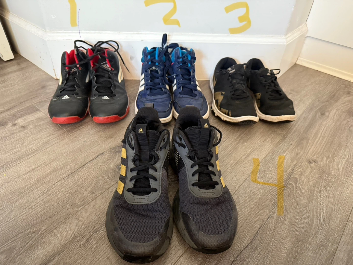 Selling a mixed lot of used sneakers. There's a variety of brands and sizes, perfect for someone looking for a budget-friendly option. They show signs of wear but still have plenty of life left! $30 each. Pu 197/70th. If they are up they are available. Serious inquires only please. 1. Adidas size 3 2. Adidas size 4 3. Nike size 5 4. Adidas size 4.5