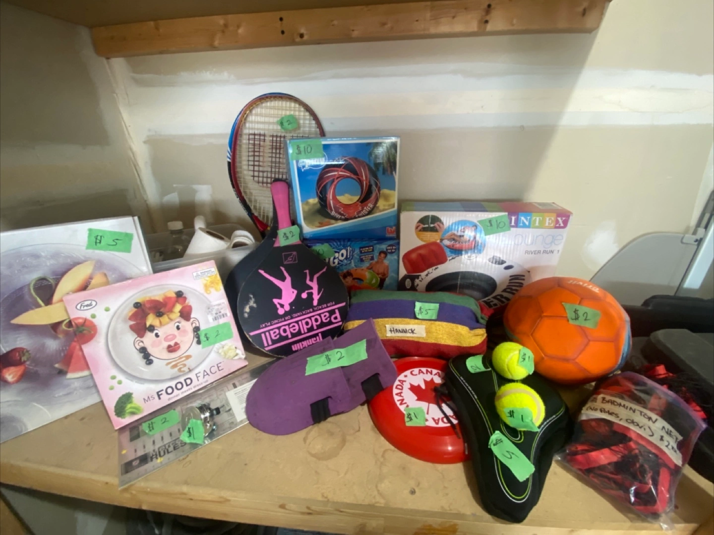 I'm selling a mixed lot of items, perfect for some summer fun and creative meals! Included are: - A Franklin Paddleball set, great for the beach or backyard - An Intex River Run 1 lounge for relaxing on the water - A Fred MS Food Face plate for making mealtime fun Pick up in Orléans