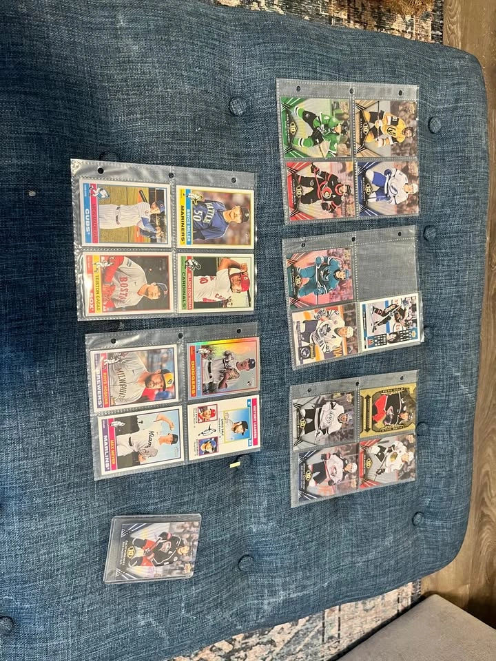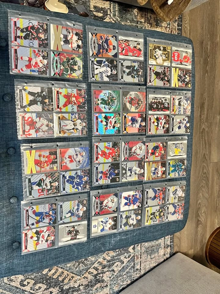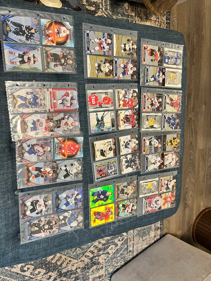 Selling a fun collection of sports cards in a collector's binder. This lot is perfect for a new collector, a young fan looking to start a collection, or anyone who enjoys the nostalgia of cards from the 80s, 90s, and 2000s. This collection includes: Hockey Cards: A large variety of cards from the late 90s and 2000s, featuring players from all major NHL teams. Baseball Cards: A selection of vintage-style baseball cards from the late 80s and early 90s, with teams like the Cubs, Mariners, Red Sox, and Cardinals. Collector Binder: A two-tone black and blue binder with a hockey player design on the front, with card pages to store and protect the collection. The binder has a strap for easy carrying. This is a great "mystery lot" that could contain some hidden gems and is a fun way to own a piece of sports history. The cards are in good condition for their age and are stored in protective sleeves. Feel free to message me with any questions. Local pickup is preferred in Pickering.