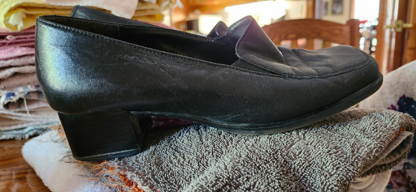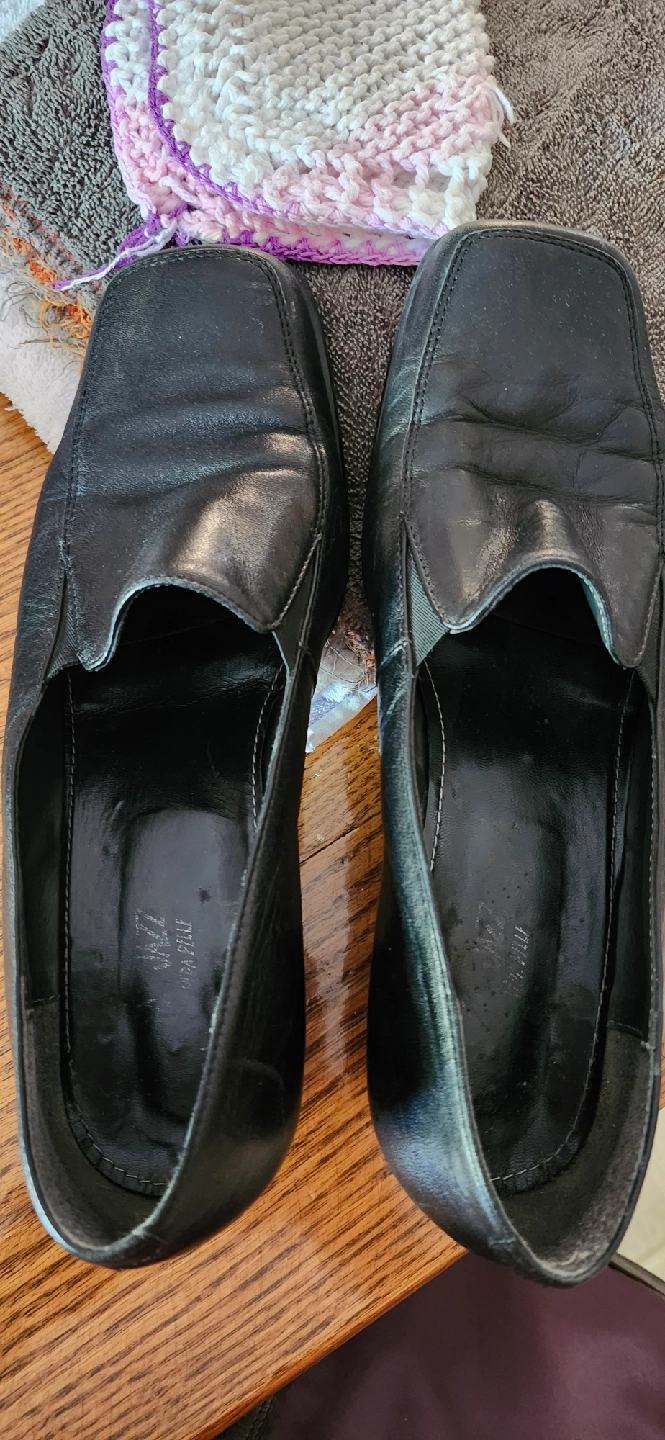 Selling a pair of Miz Mooz black leather loafers in size 9.5. They're in good condition and ready for a new home! The shoes feature a classic loafer design with a low heel, perfect for everyday wear