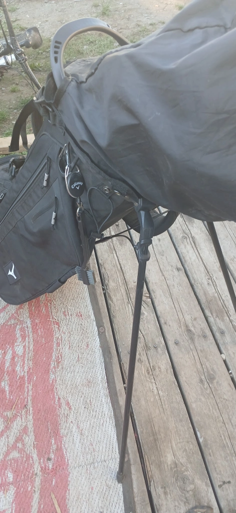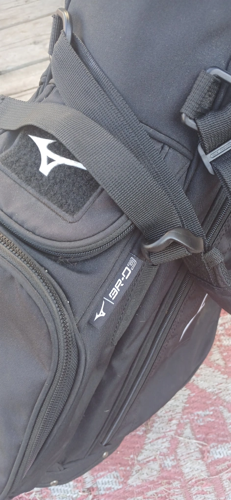 Selling a Mizuno BR-D3 golf stand bag in black. It's in great condition and ready for the course. Features include: - Lightweight design - Multiple pockets for storage - Stand mechanism works perfectly Perfect for carrying your clubs and accessories with ease!