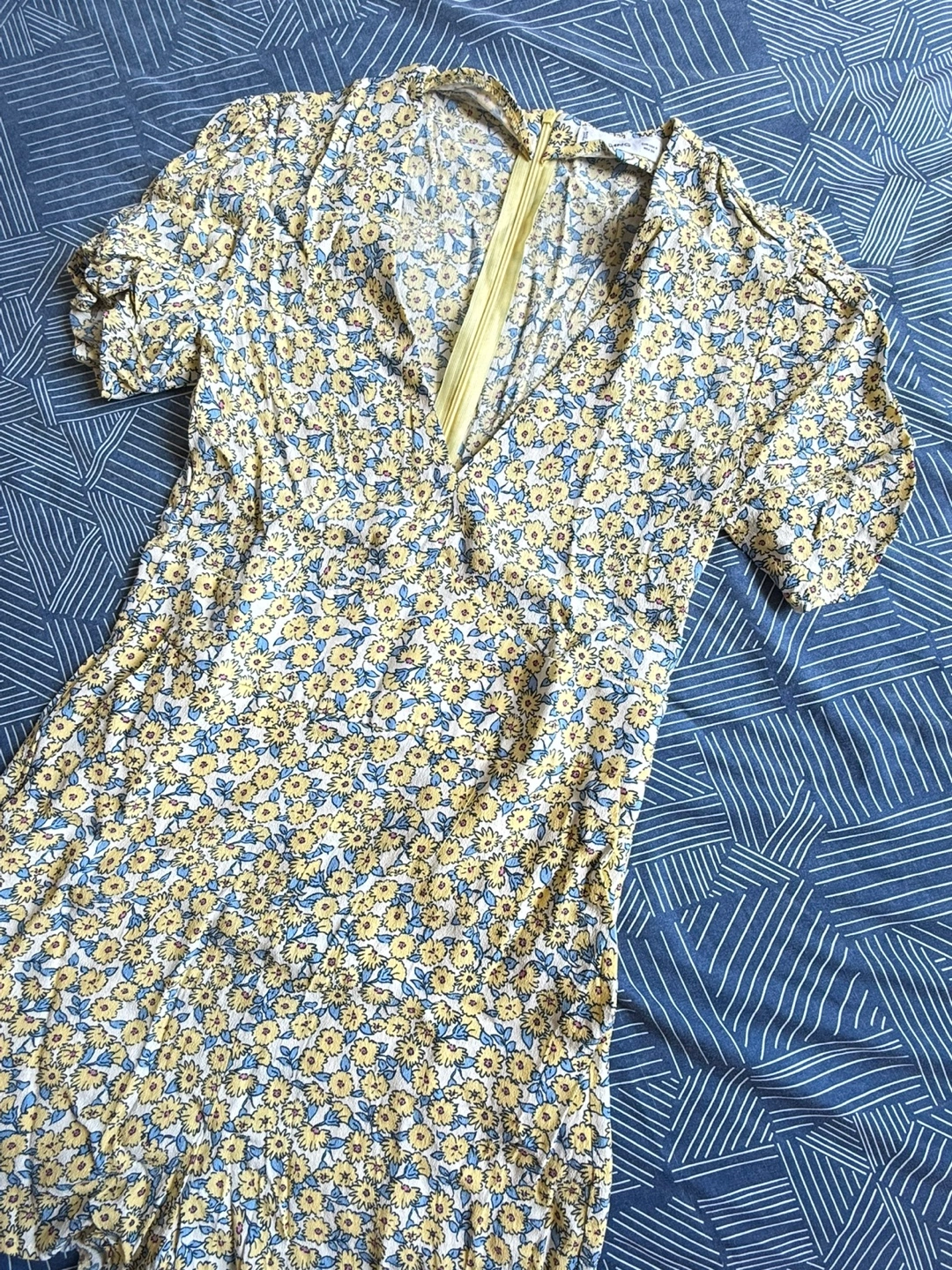 MNG romper with a shorts floral pattern. It's a size small and features a yellow zipper.