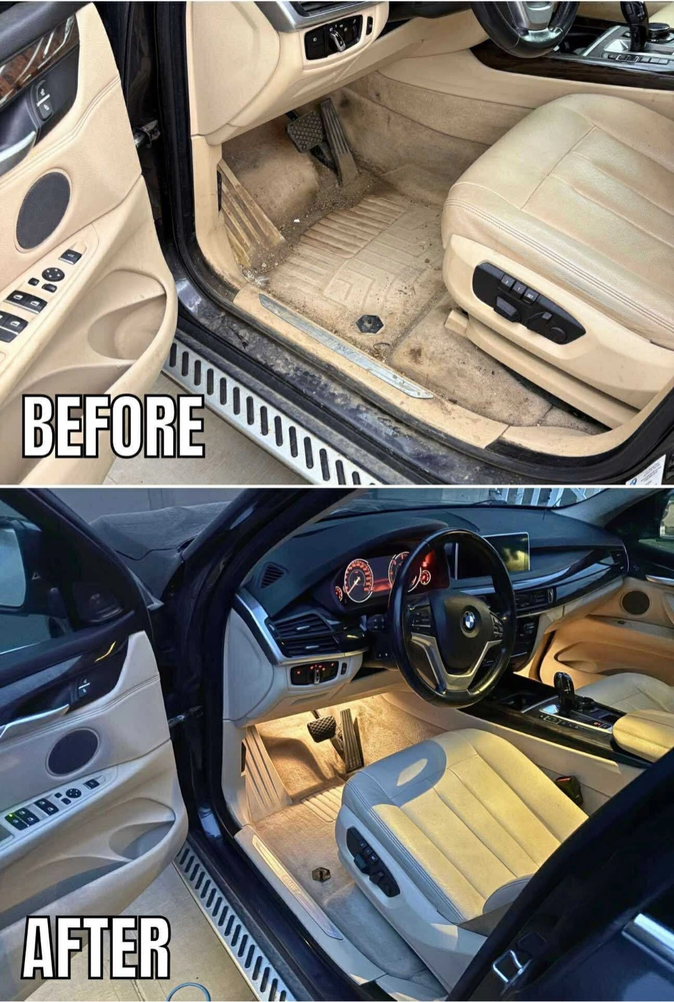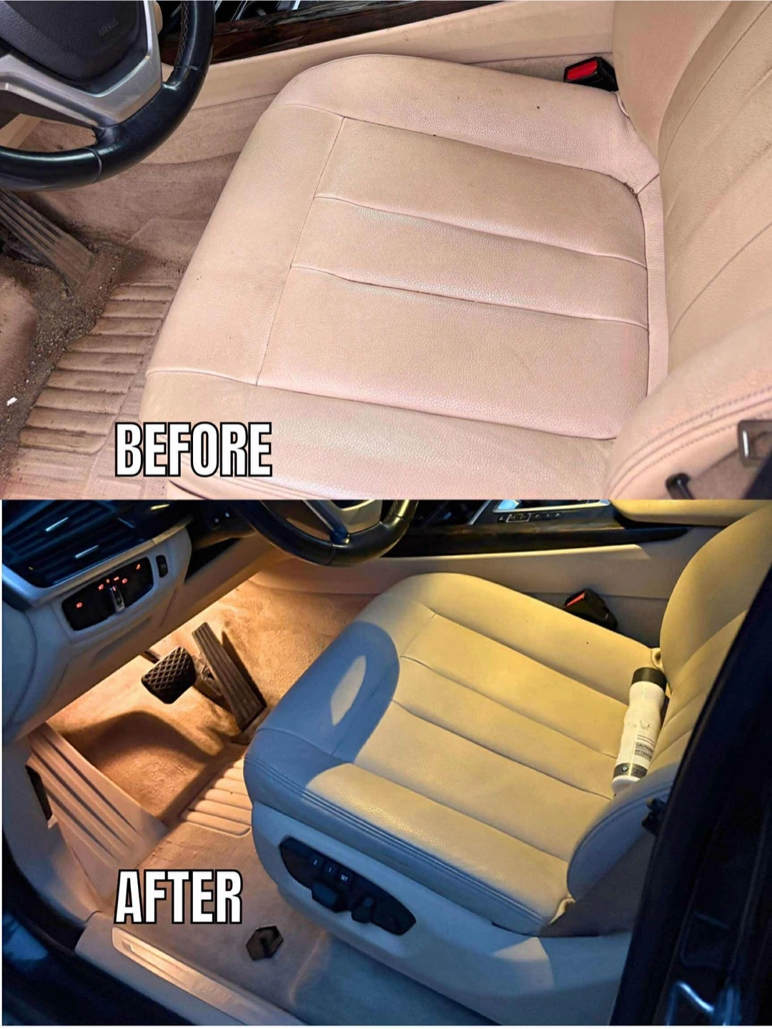 Offering car interior detailing services. Check out the before and after photos to see the difference!