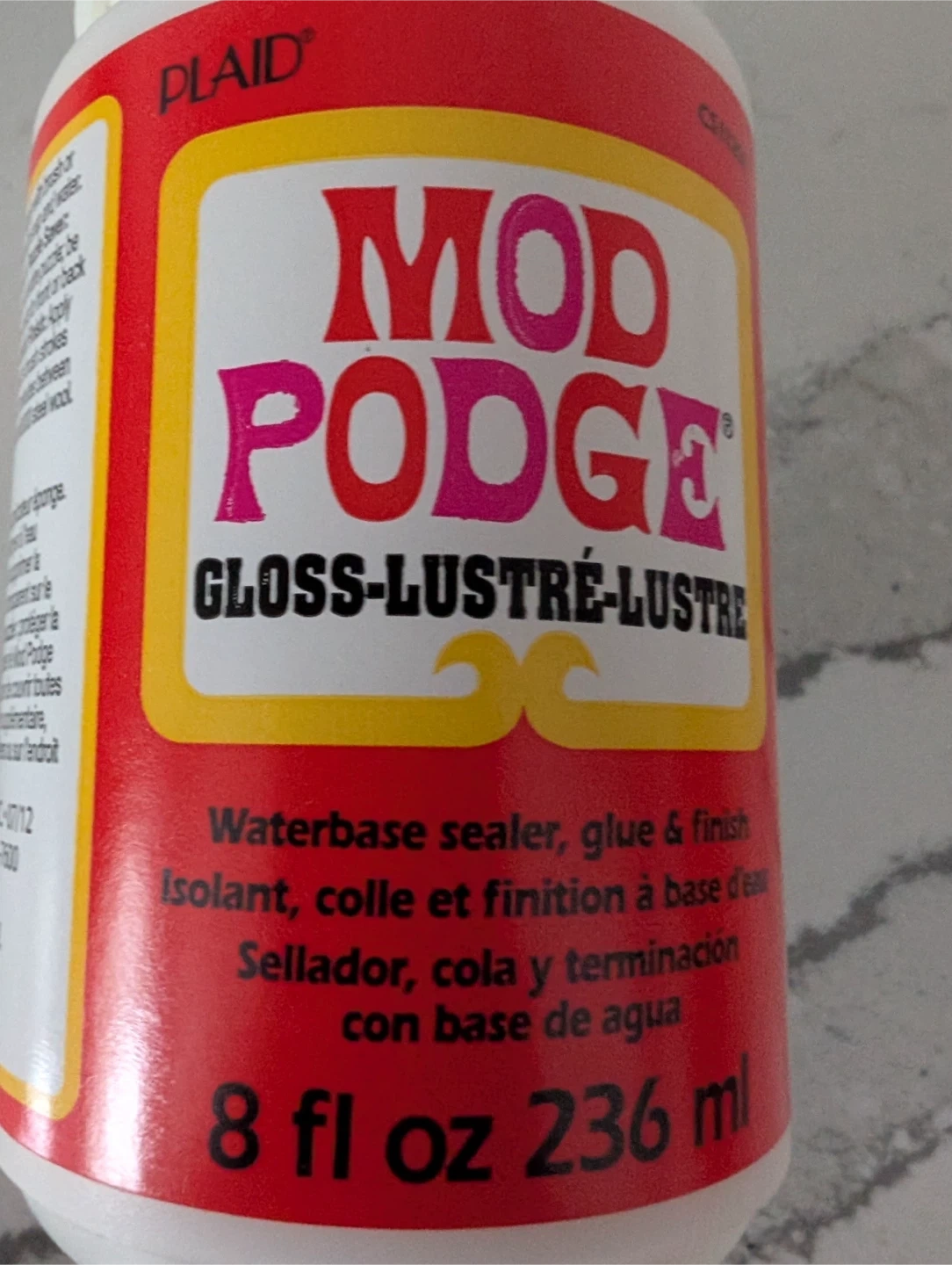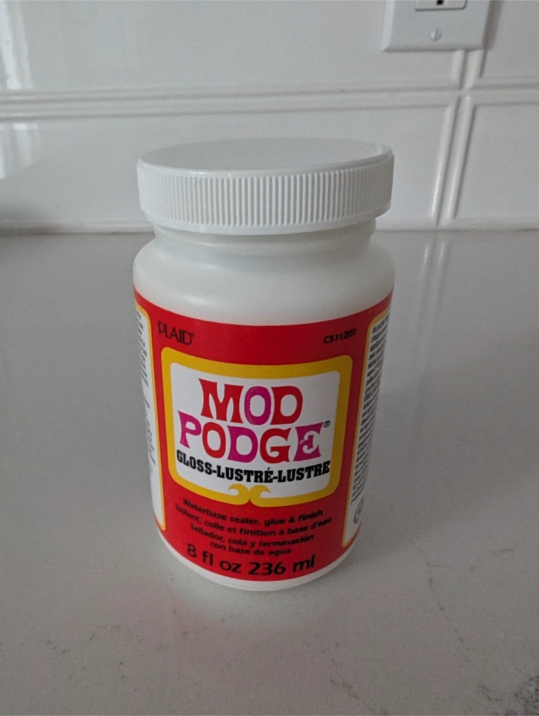 Selling a bottle of Mod Podge Gloss! It's a waterbase sealer, glue, and finish that's perfect for all sorts of craft projects. The bottle contains 8 fl oz (236 ml).