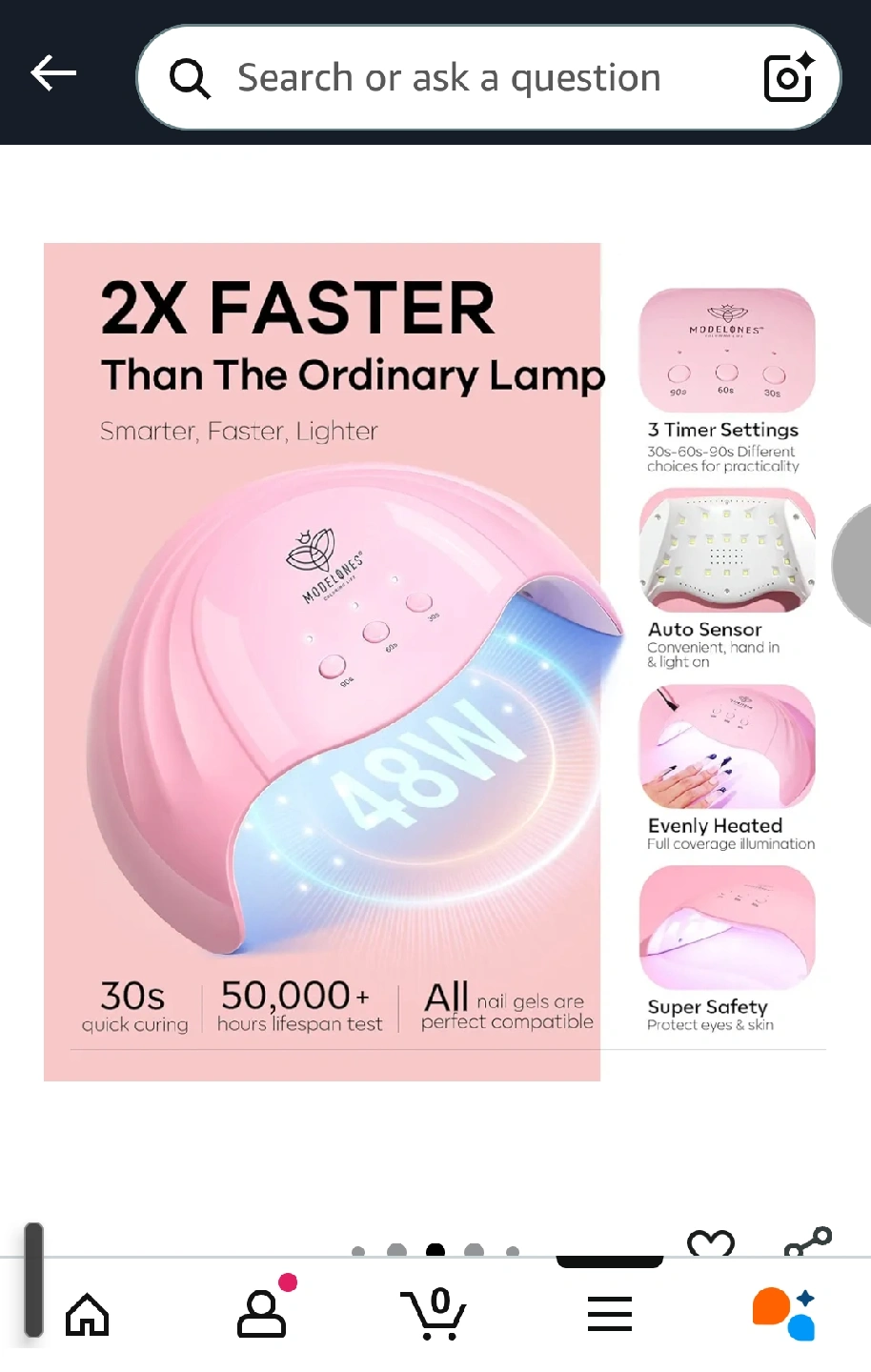 Selling a Modelones 48W nail lamp in pink! It's in great condition and ready for a new home. It also comes with 3 timer settings (30s, 60s, 90s) and has an auto sensor for convenient hand in and light on. I have used it for a year without any issues.