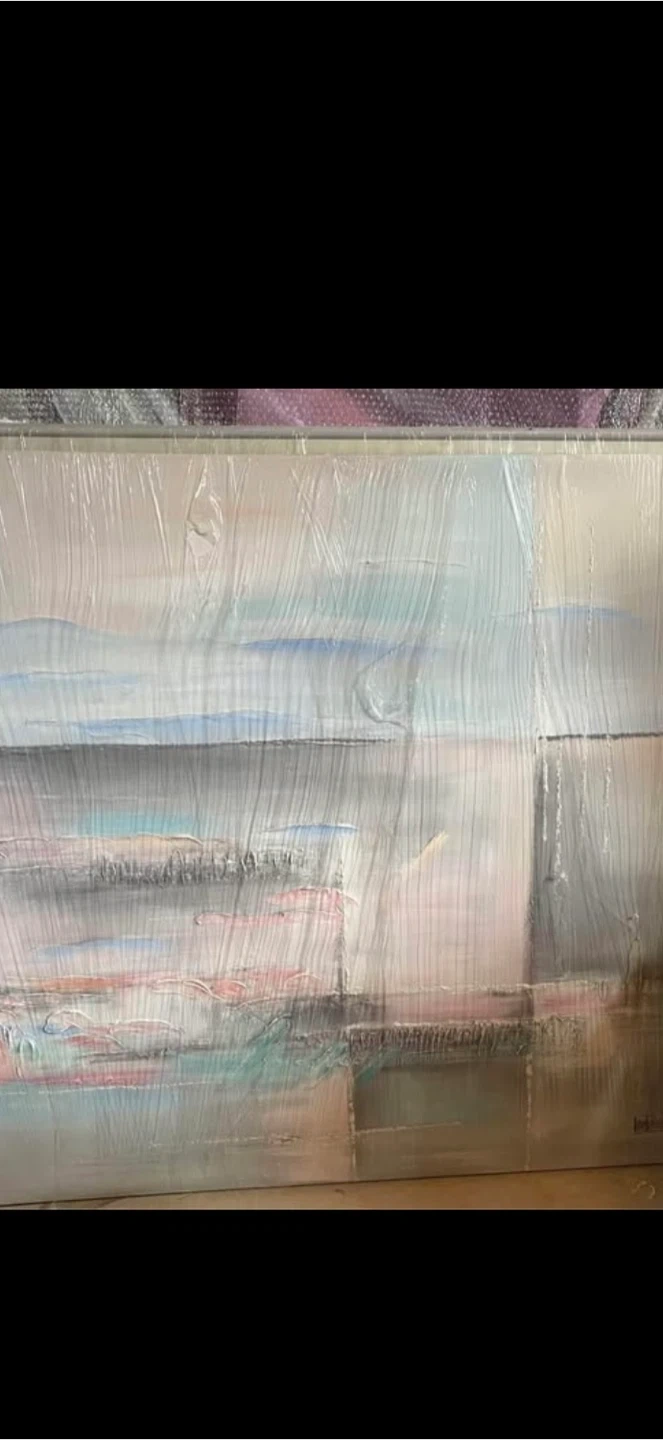 Beautiful modern art. Soft beautiful colours. 60 W x 48 H x 2 inches deep. Never used. Ready to hang. Serious buyers only.