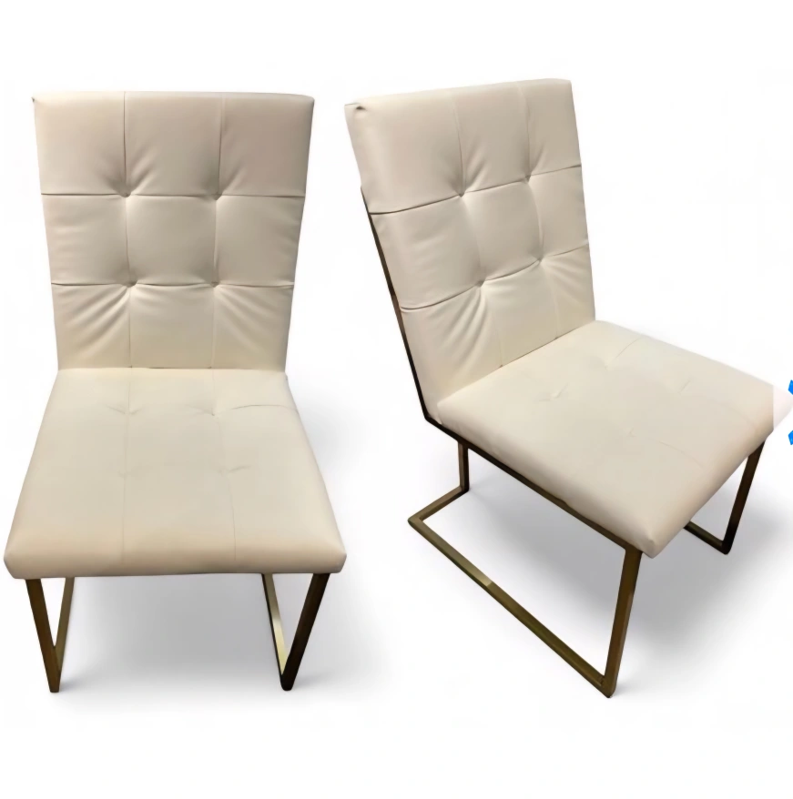 Selling a modern dining chair in cream colour! The chair features a tufted backrest and a sleek, minimalist design. It would be a stylish addition to any dining room or living space. The chair is in great condition and ready for a new home.