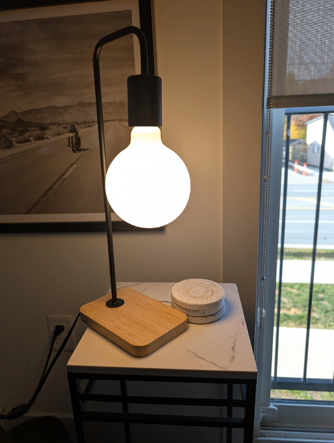 Add a touch of modern elegance to your space with this stylish globe table lamp! It features a sleek black metal frame, a warm wooden base, and a bright white globe bulb. Perfect for a bedside table, desk, or living room side table, this lamp will provide a soft and inviting glow to any room