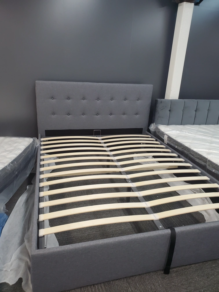 Upgrade your bedroom with this stylish grey bed frame, available in Double, Queen, and King sizes. No box spring needed – slats included for strong mattress support. Features a 40-inch headboard and easy assembly with tools and instructions provided. Packaged in 2 secure boxes for safe delivery. Brand New – Warehouse Sale Delivery Available! Prices: Single: $399 Double: $449 Queen: $449 King: $549