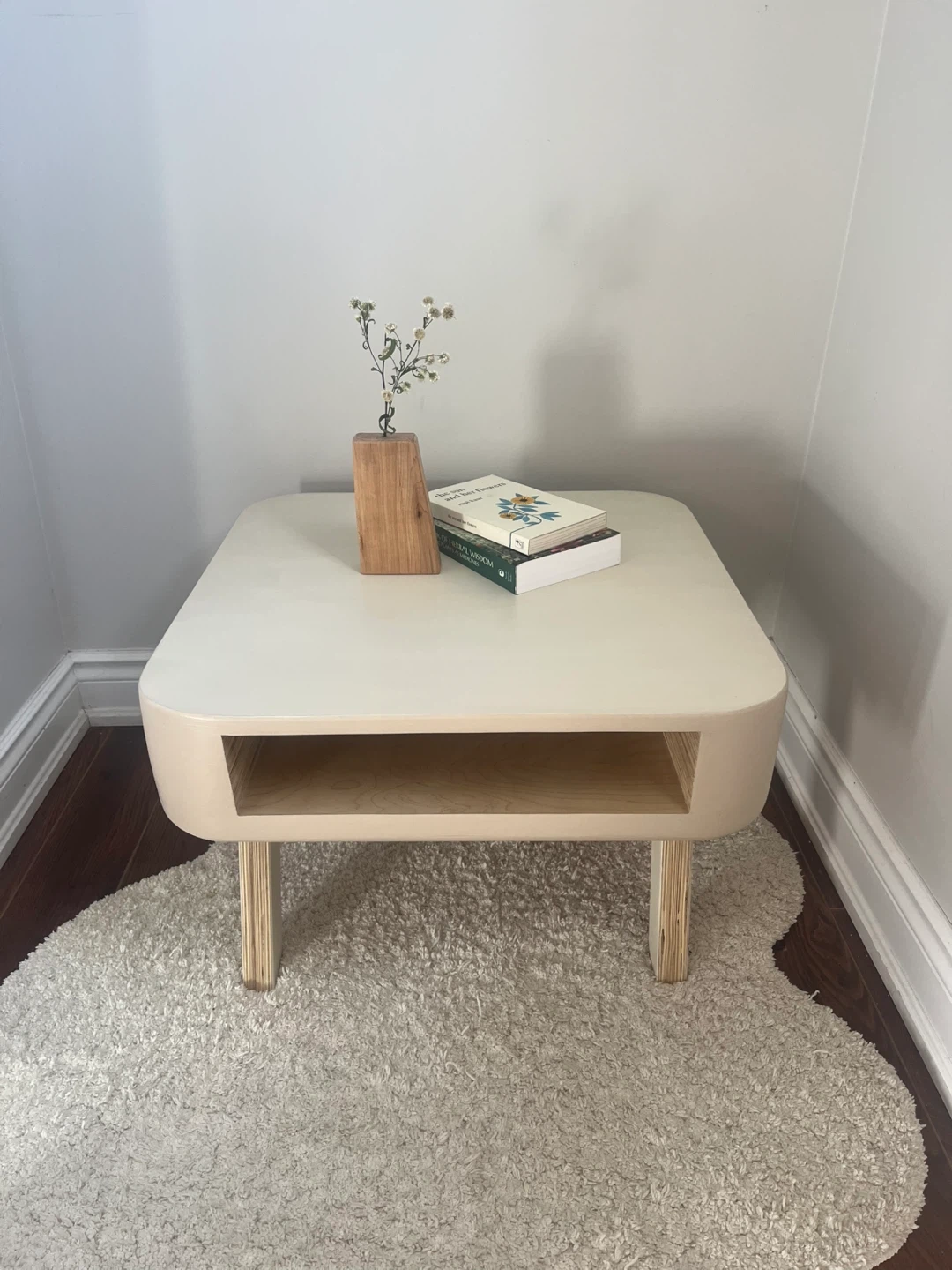 Selling a stylish, neutral 2-toned coffee table! It is small, sturdy and has a shelf for storage. It's perfect for a small space as a coffee table or also makes a nice decorative accent piece. Approx. measures 24” x 24” x 16” Pickup at Rogers and Caledonia.