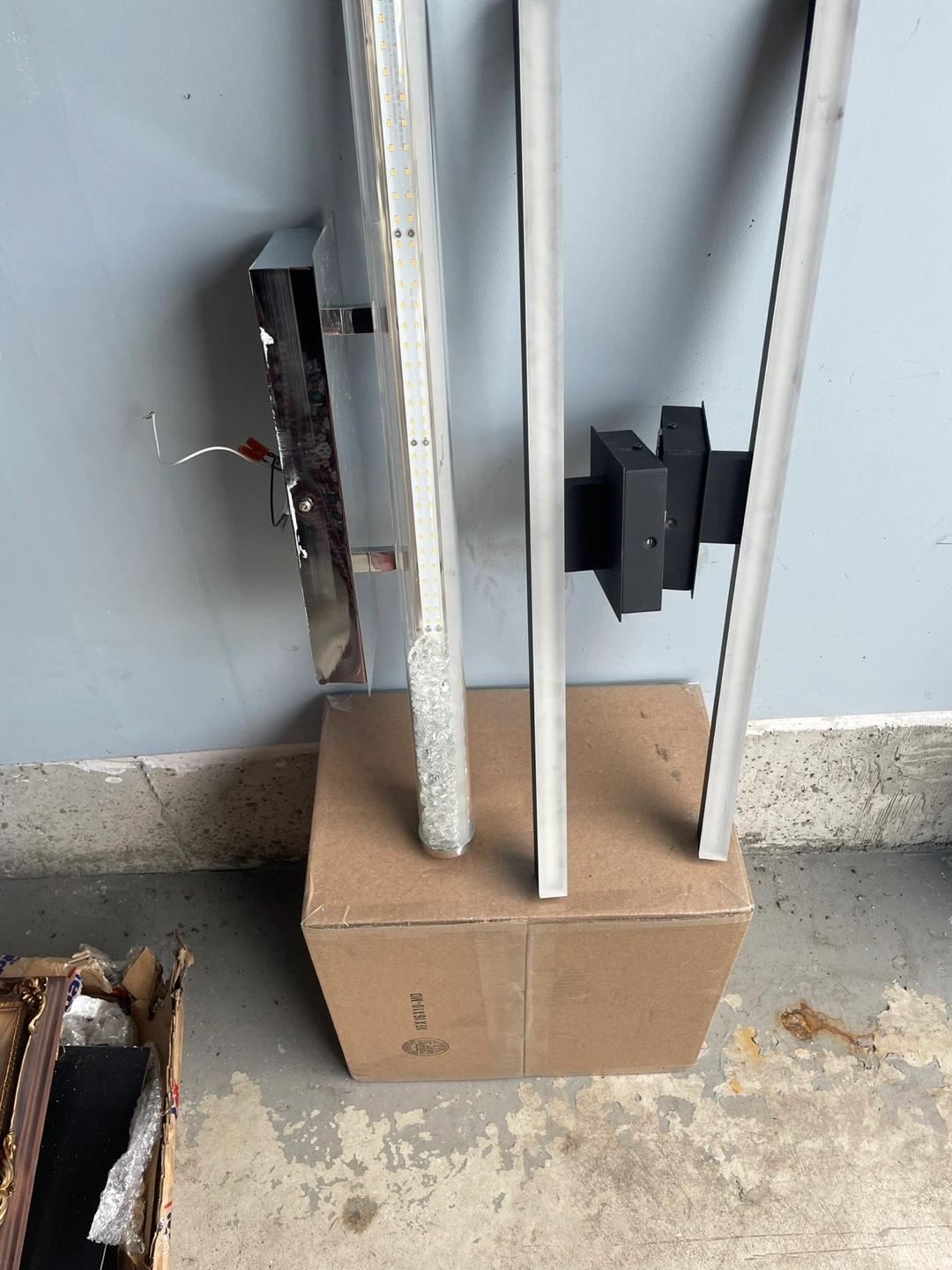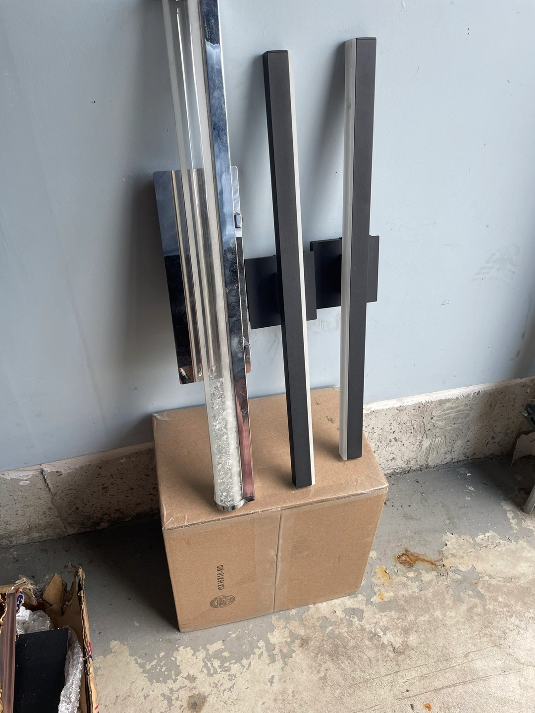 Selling a set of modern wall sconce lighting fixtures. They come in their original box. These lights would be perfect for adding a touch of modern style to any room $40 each light