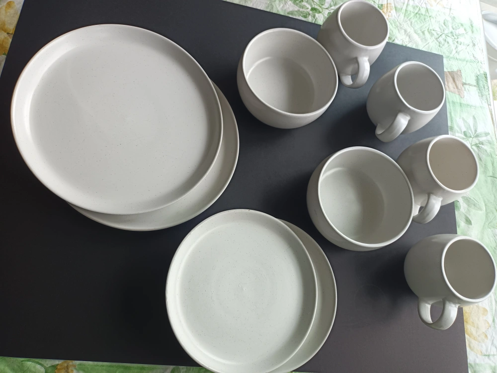Selling a modern white dinnerware set. Includes plates, bowls, and mugs. Perfect for everyday use or special occasions! The set is in great condition and ready for a new home. 10 PCs.