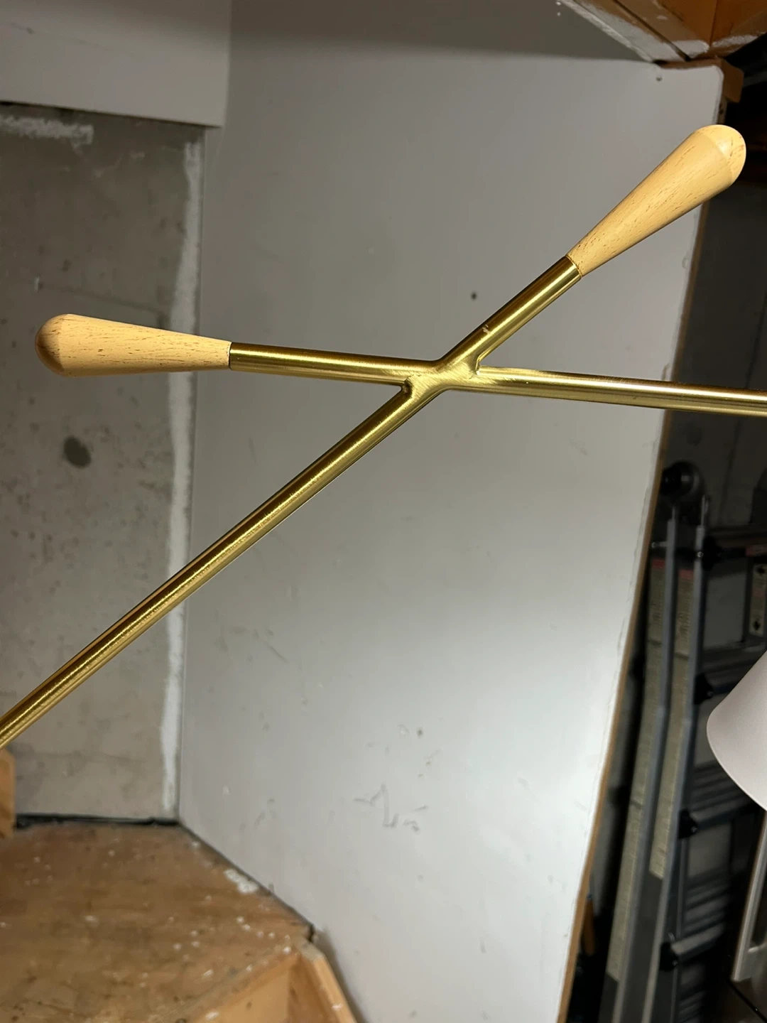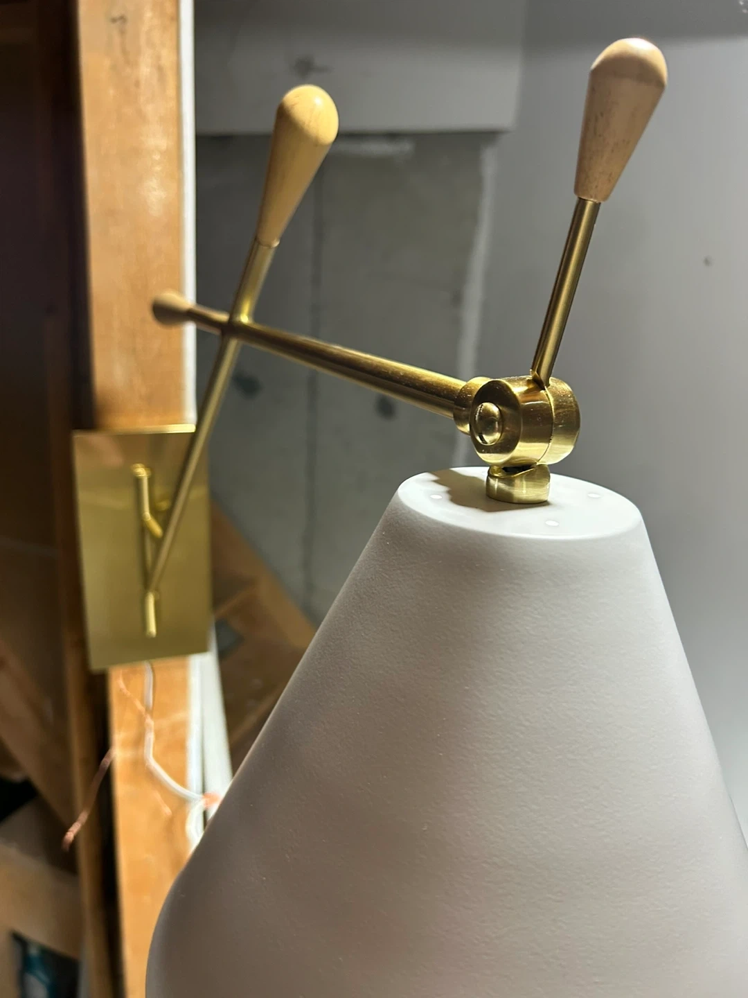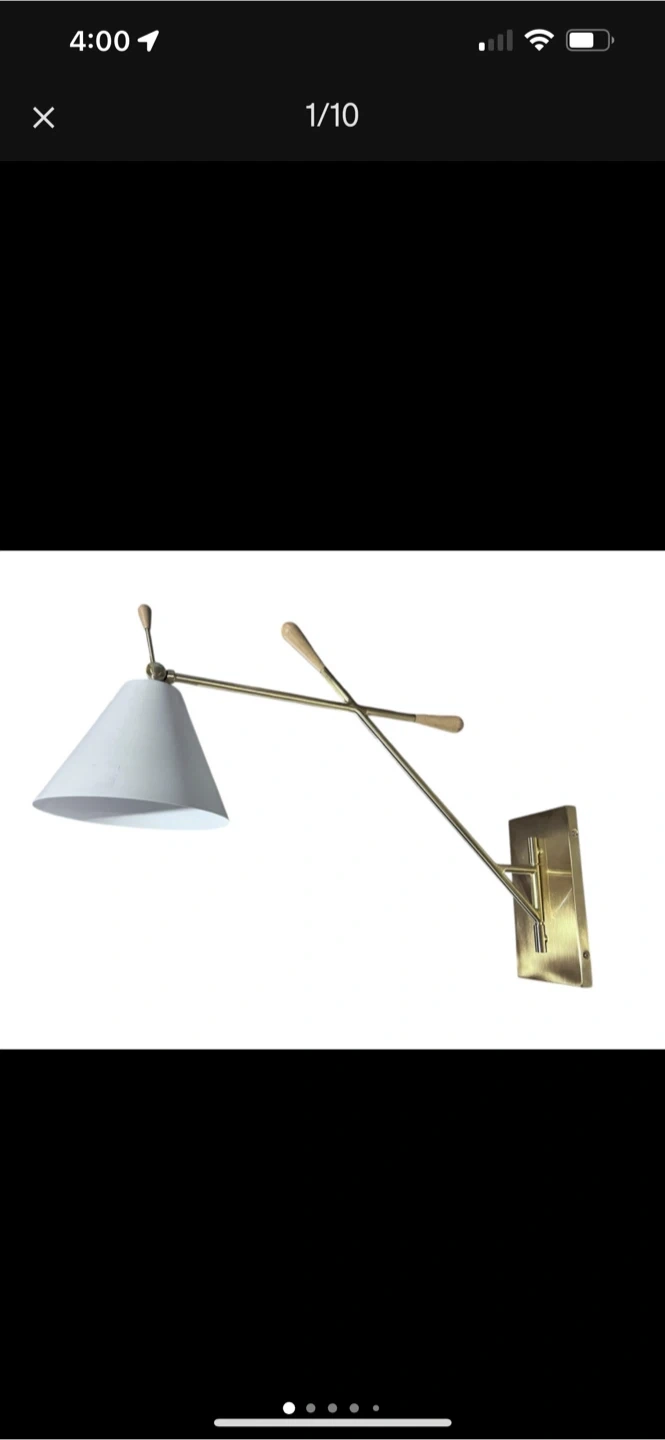 Selling a modern-style wall sconce. It features a white shade and gold-colored metal accents. It would add a stylish touch to any room! There are 2 in stock, you can get a very good price if you buy them all.