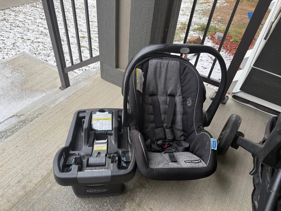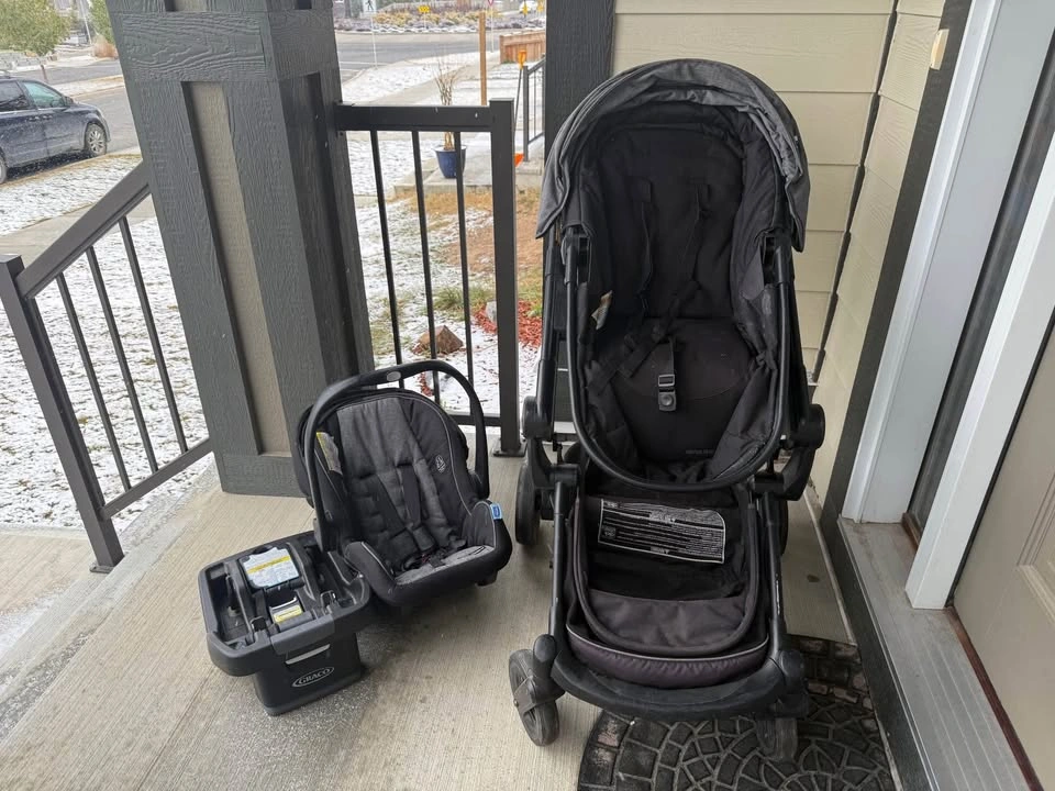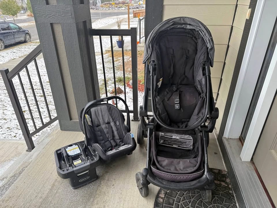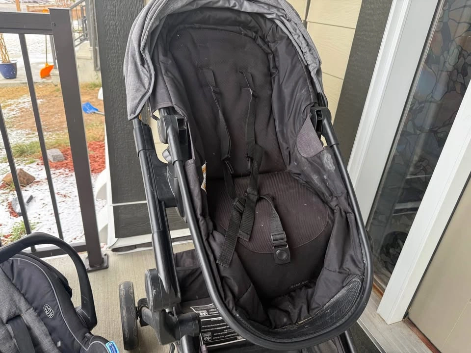 We are selling our old stroller/carseat! It hasn't been in any accidents and was well loved. Missing the tray, cupholder, and one of the locks on the stroller is broken. All these parts can be ordered separately we just haven't gotten around to it! The lock mechanism still works, it's just the plastic piece that controls it that broke... Will likely need a clean PU in mahogany SE