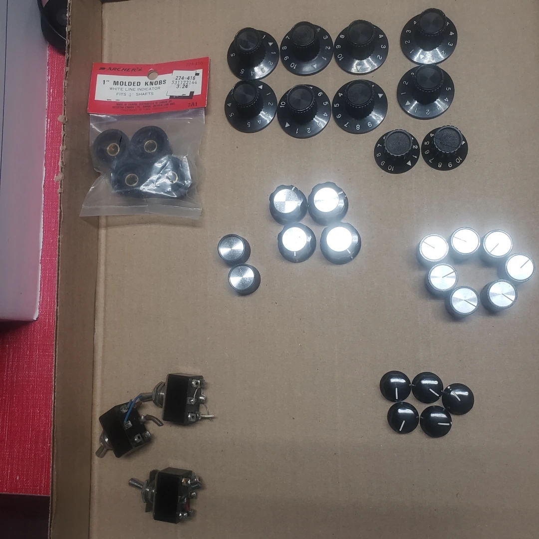 Knobs, Includes a variety of styles and types. Some in the original packaging is included. Originally Bogen amp knobs $2 each all others $1 each
