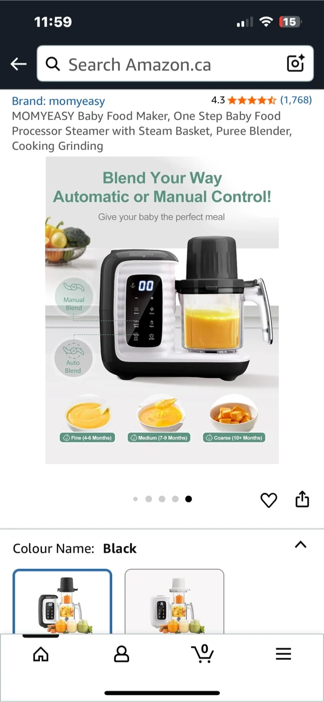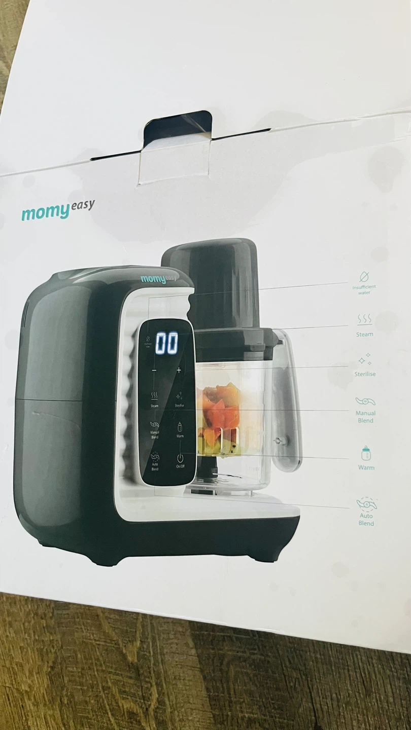 Selling a MOMYEASY 4-in-1 baby food maker in black. It is a one-step baby food processor steamer with a steam basket, puree blender, and cooking grinder. Blend your baby's meal the way you want, automatic or manual control!