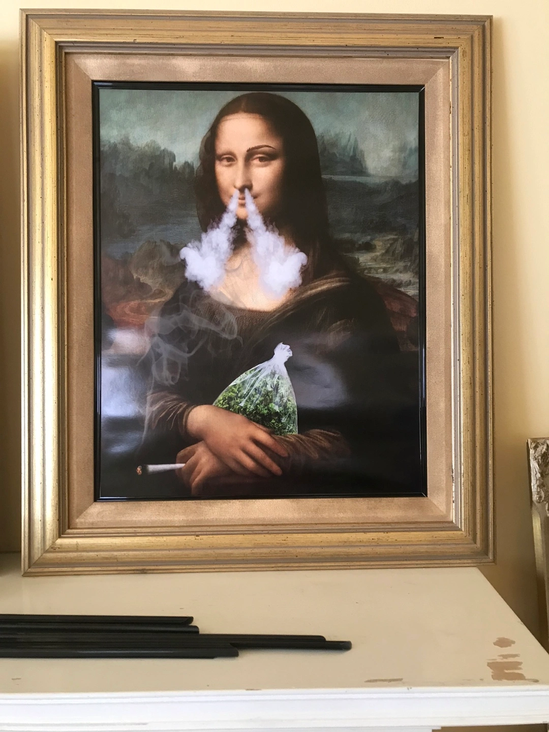 Fun Mona Lisa spoof poster from the UK. Used as decor for a private party. Do not need now. Gold frame NOT INCLUDED. Or, if you want it with the frame let’s talk. From smoke free, pet free home. Yonge/Davisville pick-up.