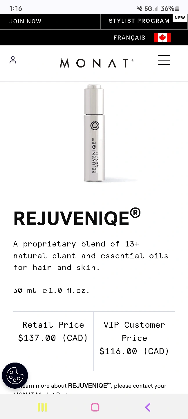I have 3 extra sealed and unpoened Monat Rejuveniqe Oil Intensive. Retails for $137/ each (or $116 for vip) plus taxes and shipping. I would prefer to have them go all at once. Asking $80 per bottle, or $200 if you'll take all 3. Would like a quick sale. thanks! It's a proprietary blend of 13+ natural plant and essential oils for hair and skin. - 30 ml / 1 fl oz - Can be used as a pre-shampoo treatment or as a facial moisturizer - Vegan and cruelty-free - Does not contain phthalates, SLS/SLES, or parabens Retails for $137 CAD