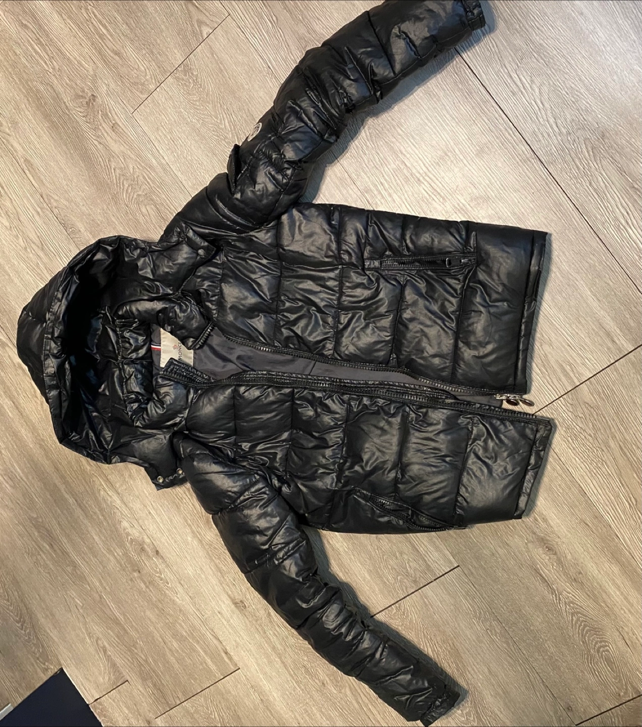 Here's a stylish black padded down jacket from Moncler! It's in great condition and ready to keep you warm during the colder months. The jacket features the iconic Moncler logo and a comfortable fit. Feel free to reach out if you have any questions!