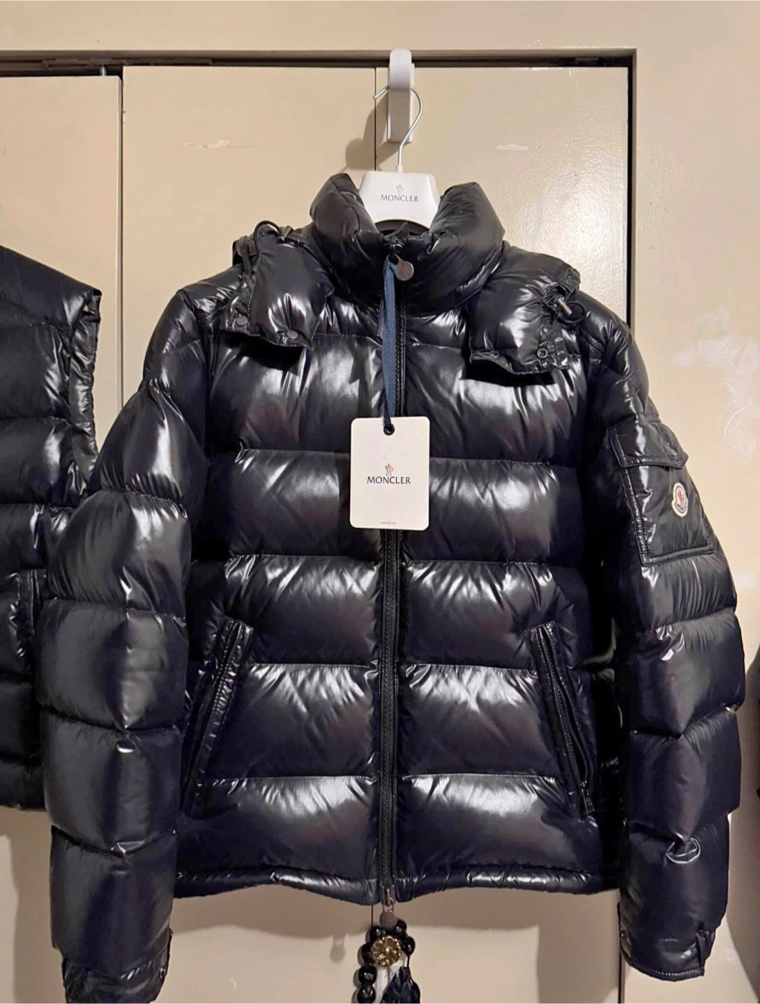 Here's a Moncler puffer jacket in black. It's in great condition and ready to keep you warm this winter! This stylish jacket is perfect for braving the Canadian weather.