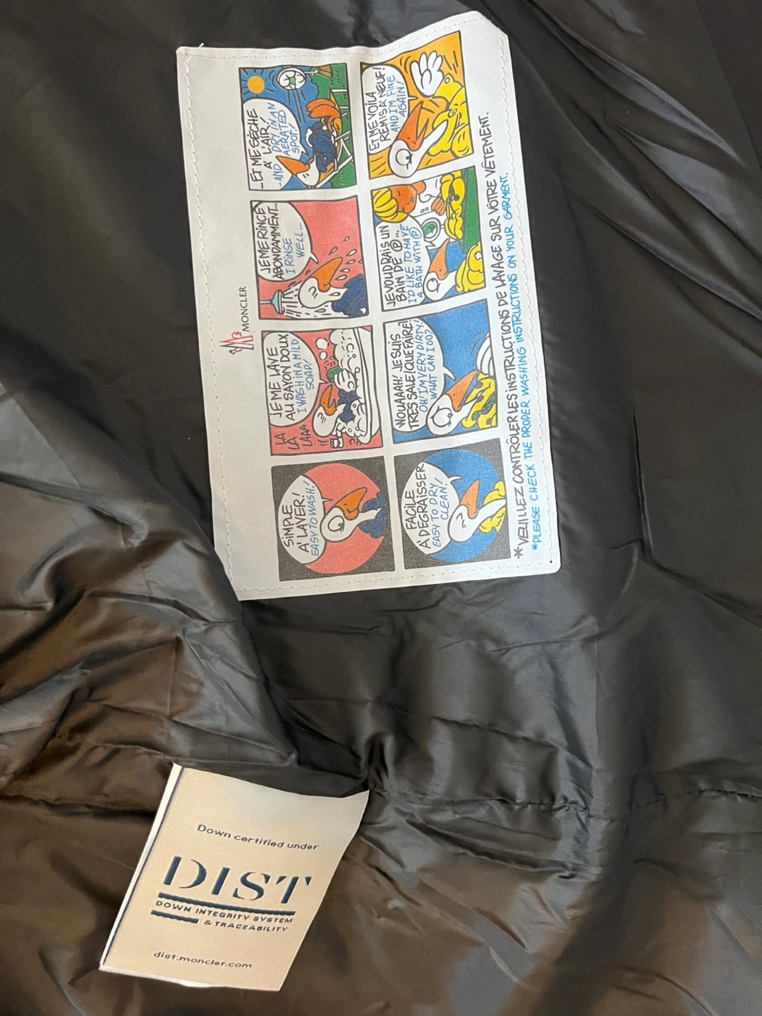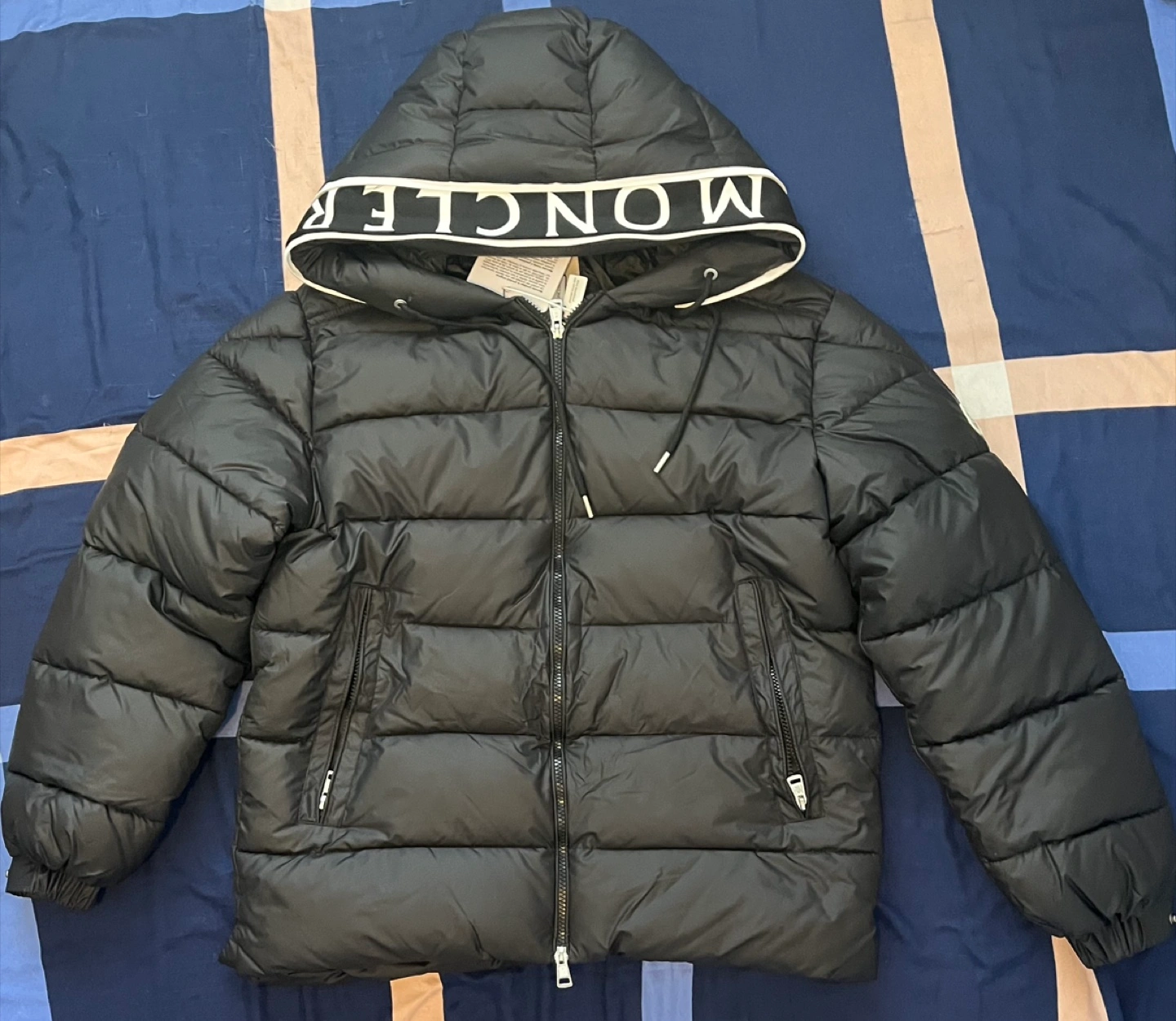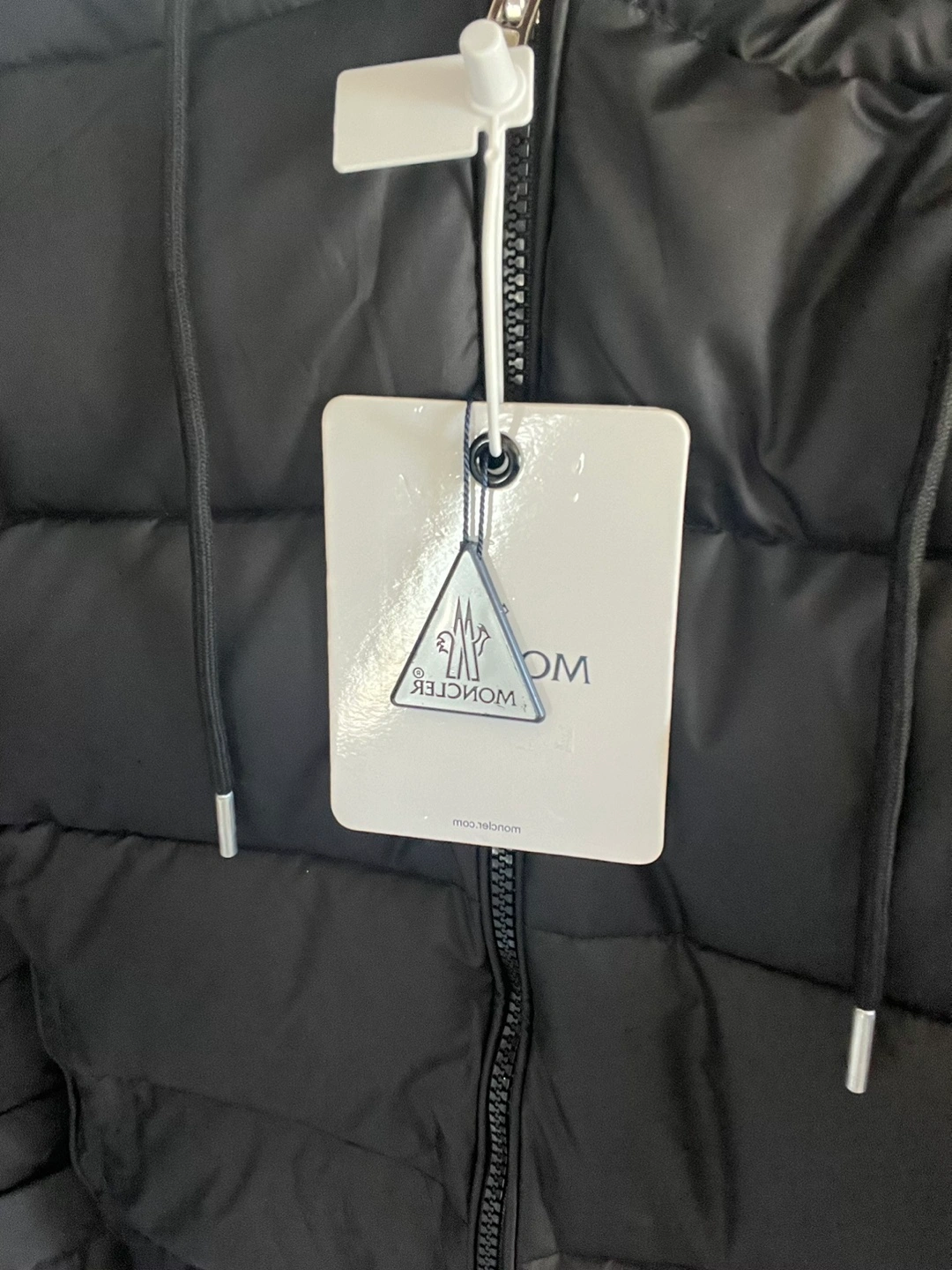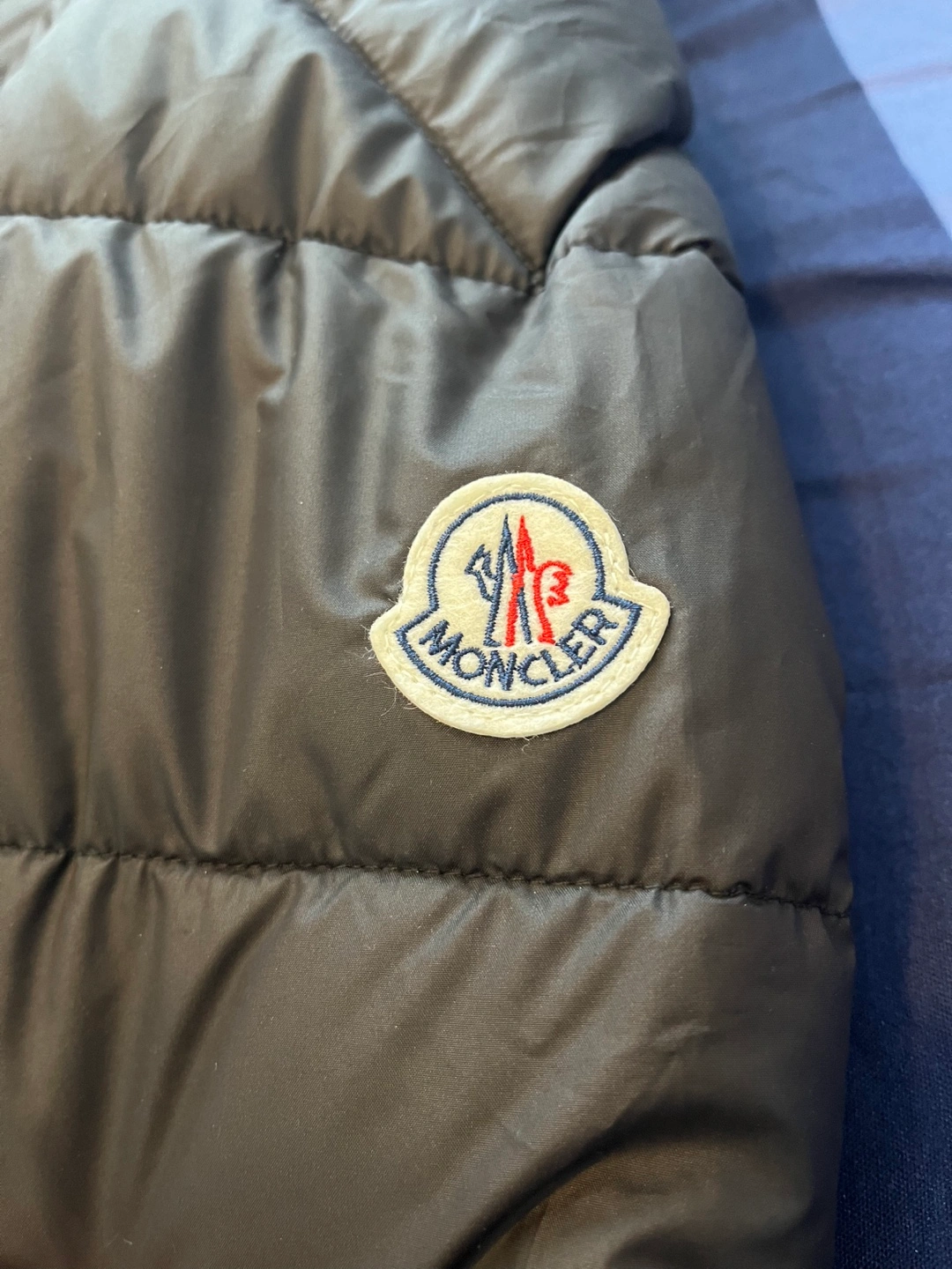 Selling a Moncler black puffer jacket. It's in great condition and perfect for the colder months! The jacket features the Moncler logo on the arm and hood. Feel free to reach out if you have any questions!