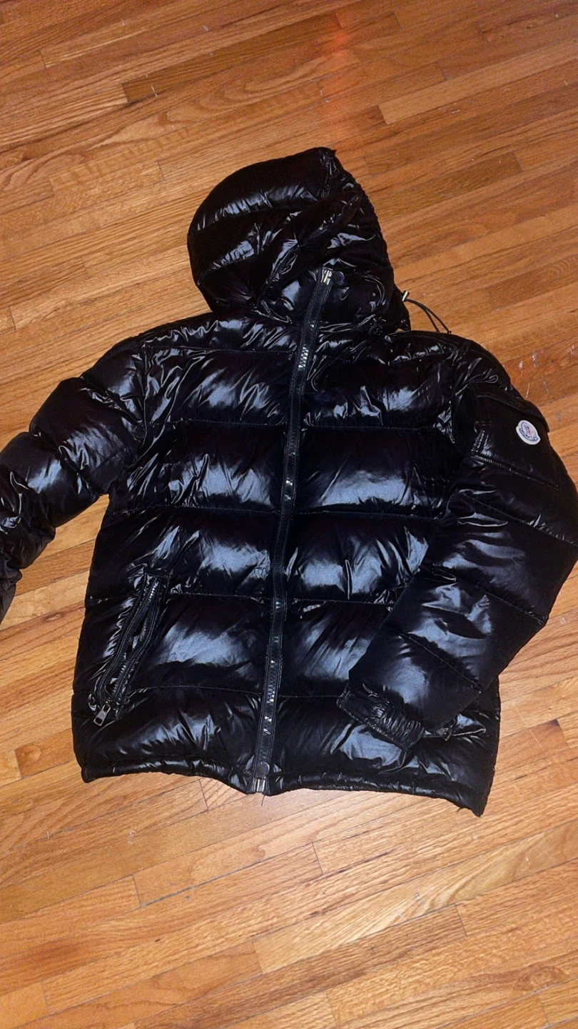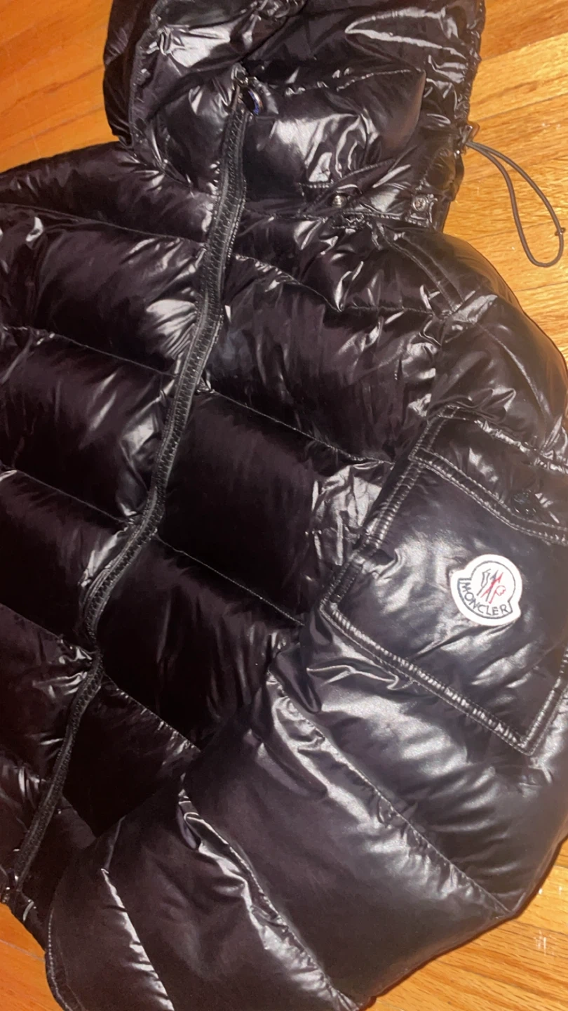 Selling a stylish Moncler black puffer jacket. It's in great condition and perfect for staying warm during the colder months! The jacket features a sleek design and the iconic Moncler logo on the sleeve
