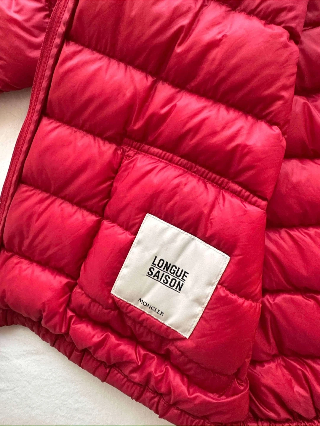 Check out this vibrant red Moncler Longue Saison puffer jacket! It's in great condition and ready to keep you warm and stylish. This jacket features a classic puffer design and the iconic Moncler logo. Perfect for adding a pop of colour to your wardrobe!