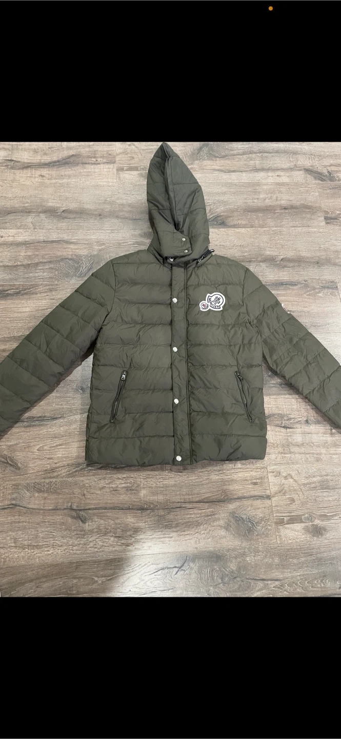 Olive green Moncler padded down jacket in good condition. It’s real I only got one pic dm me for more details need gone asap!