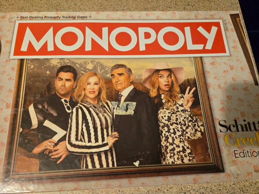 Selling a Monopoly game, Schitt's Creek Edition! It's a fast-dealing property trading game with a fun twist featuring the characters from the show