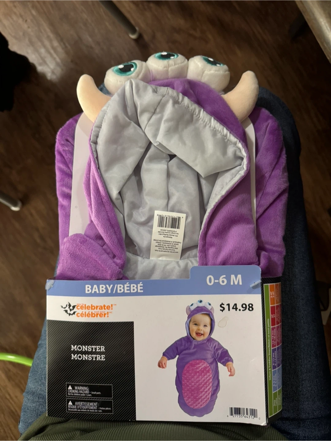 Selling a super cute Monster costume for babies aged 0-6 months! It's in great condition and perfect for Halloween or dress-up. The original price was $14.98