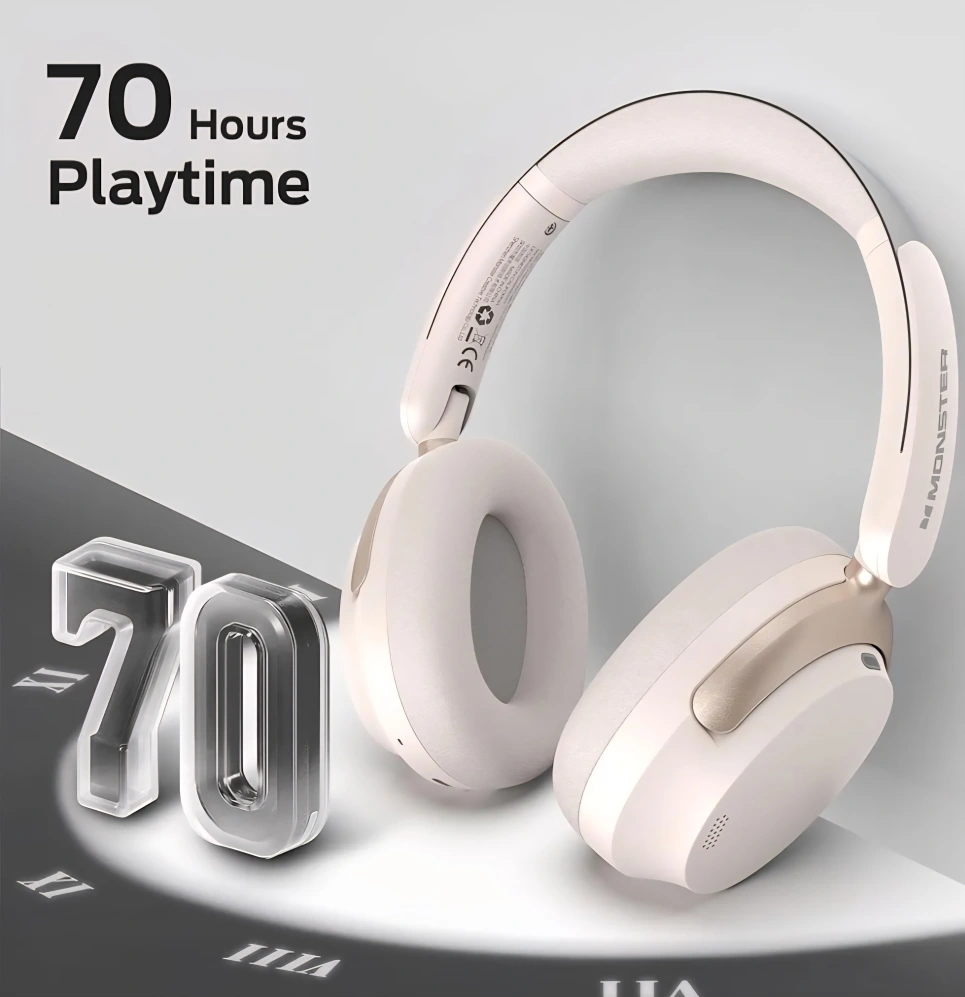 Monster Persona 3rd ANC Over Ear Headphones, Active Noise Cancelling Headphones with Foldable Lightweight, Wireless Bluetooth 5.4 Headphones, 3 EQ Modes, Clear Talk, 70H Playtime, Comfort Fit, White in color, only box open for inspection never used totally new!