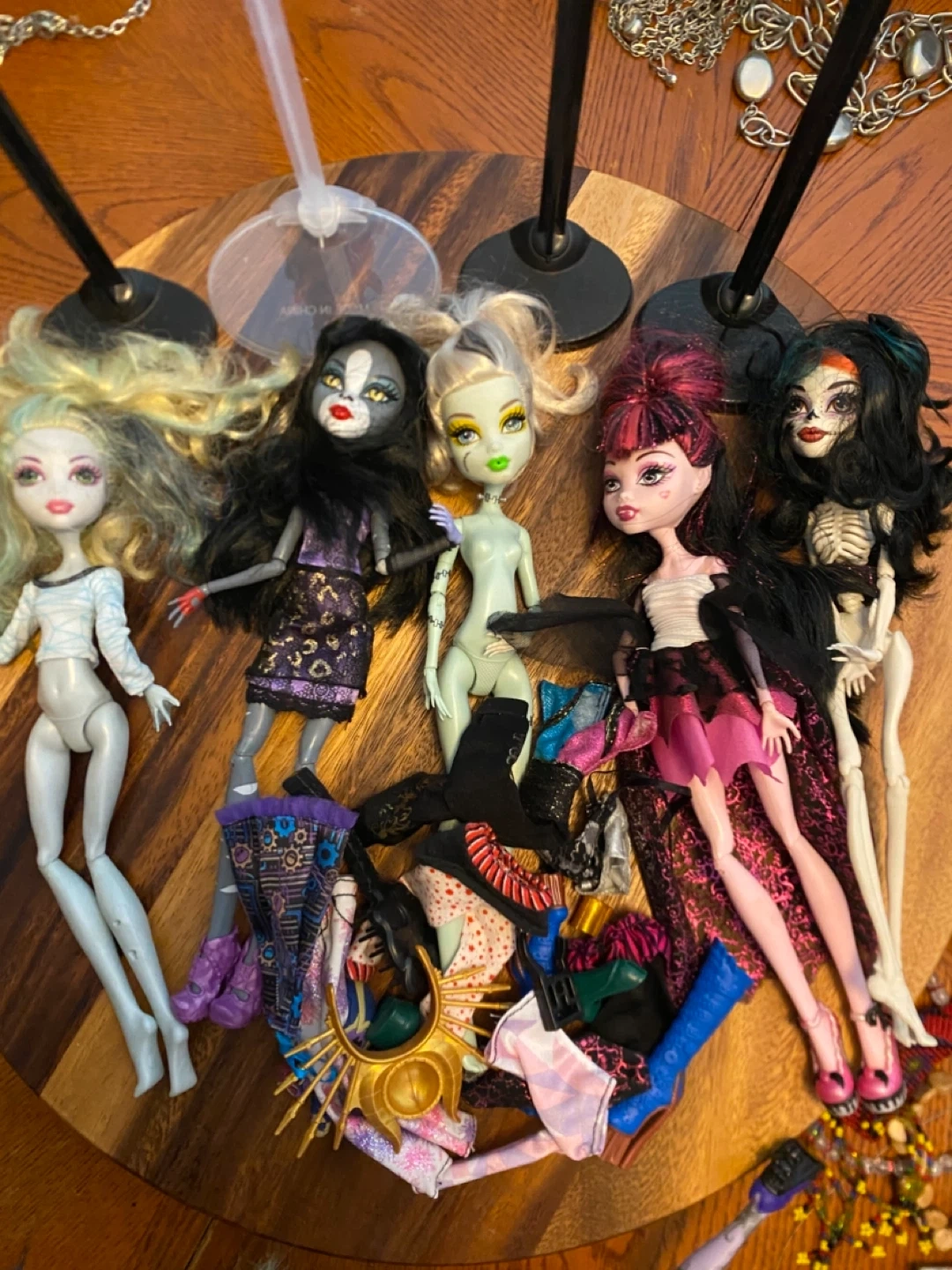 Selling a lot of collectable Monster High dolls ! They're in good condition and ready for a new home. Perfect for collectors or kids who love imaginative play. 11 dolls with a few stands and some accessories. One doll had its hair cut, OOF !
