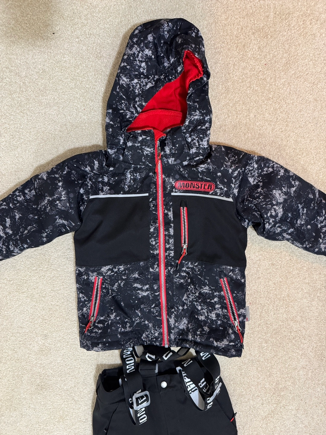Selling a gently used Monster snow suit in kids size 5! It includes a jacket and pants with suspenders.