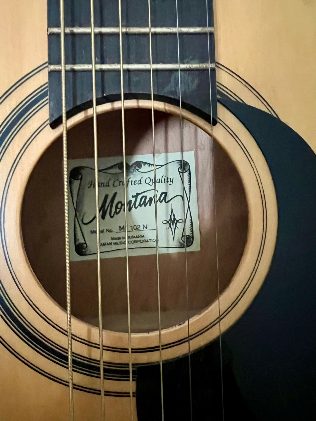 Selling a Montana M-102N acoustic guitar! It's in great shape and ready for a new home. Perfect for beginners or experienced players alike. Feel free to reach out if you have any questions or want to give it a strum