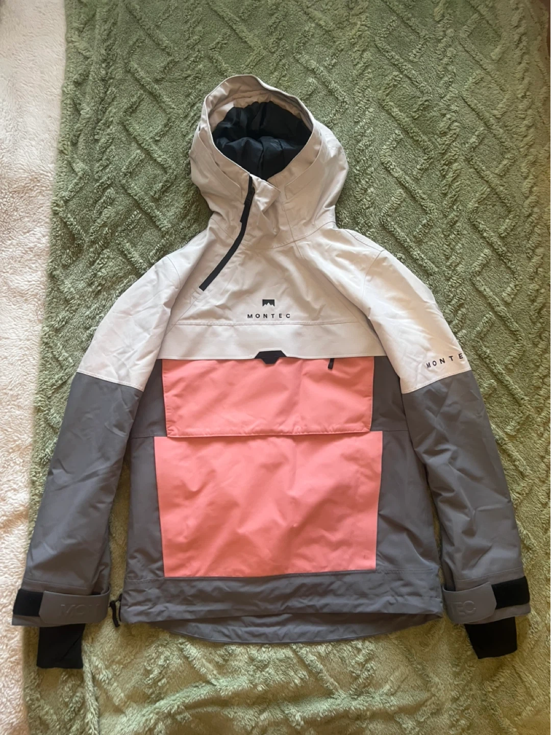 Montec women's ski/snowboard jacket. colour block design in white, pink, and grey Size XS