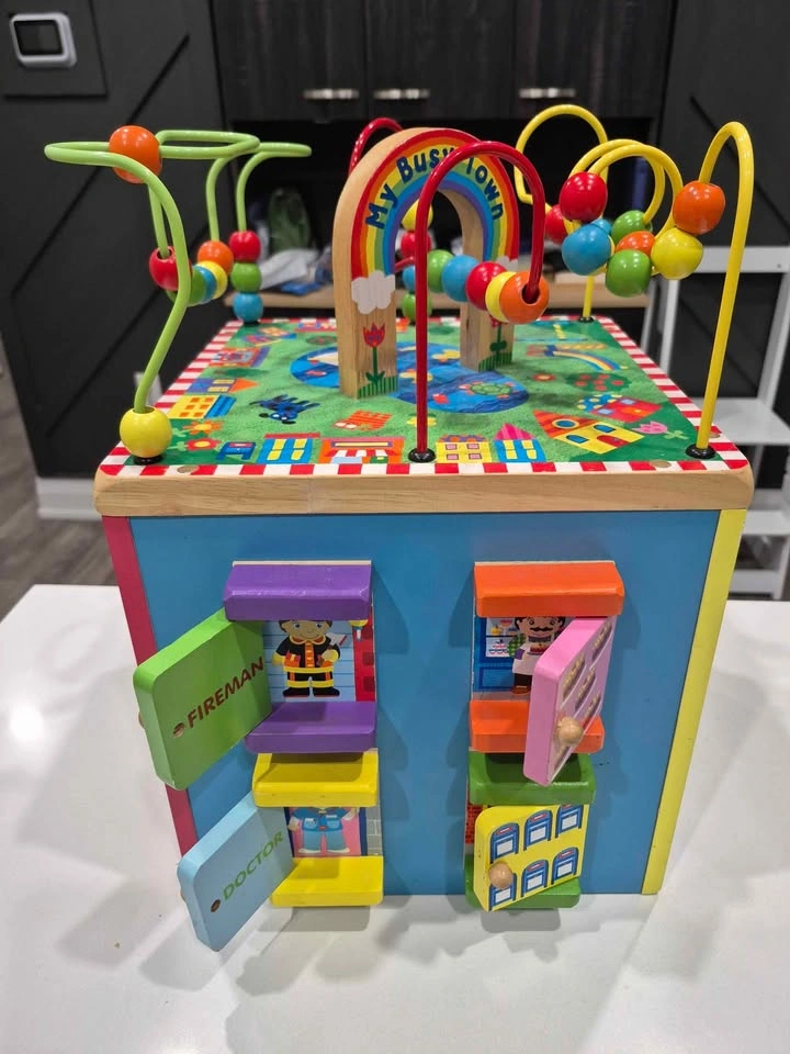 Used Montessori 4 sided play cube. My kid has just outgrown it