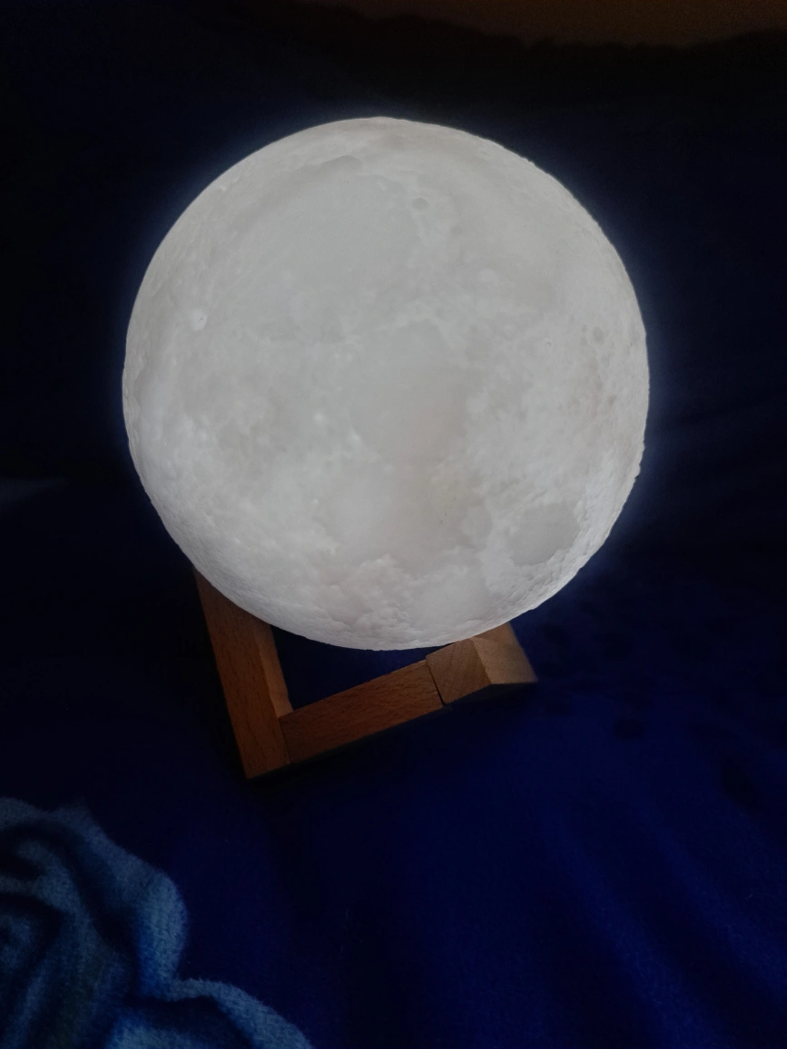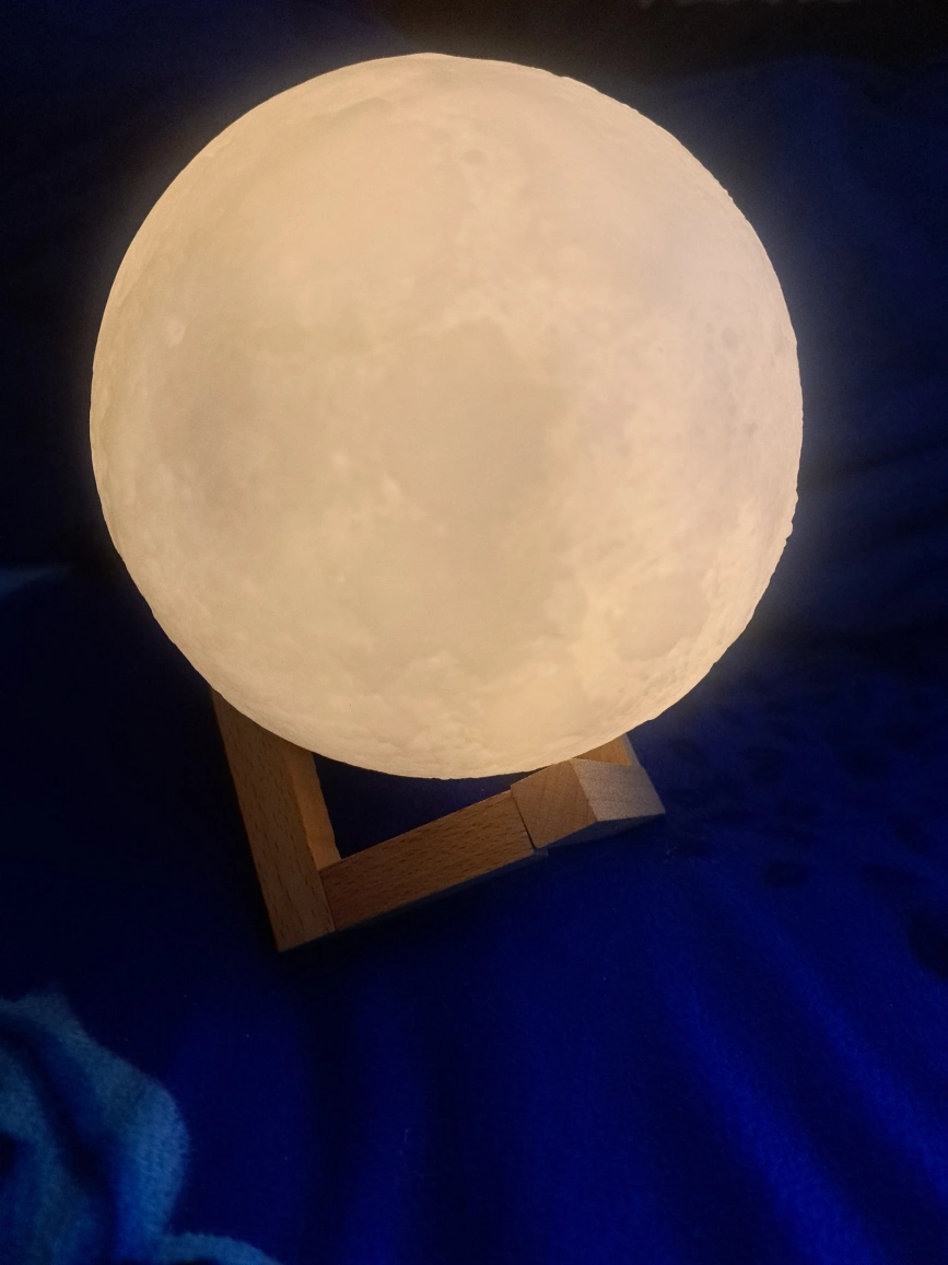 Selling a lovely moon lamp that adds a soft glow to any room! It comes with a wooden stand, making it easy to display on a desk, nightstand, or shelf