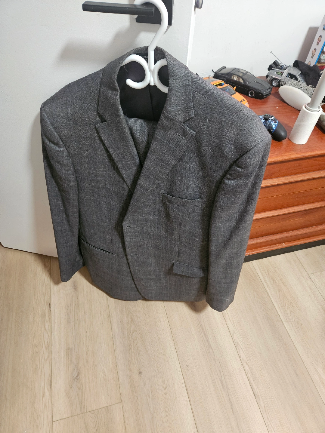 Selling a Moores grey suit in excellent condition! It's made of 100% wool, so it's perfect for keeping warm during the colder months. The pants are a size 48 waist, and the jacket is a size S2 Tall Long. Dry clean only