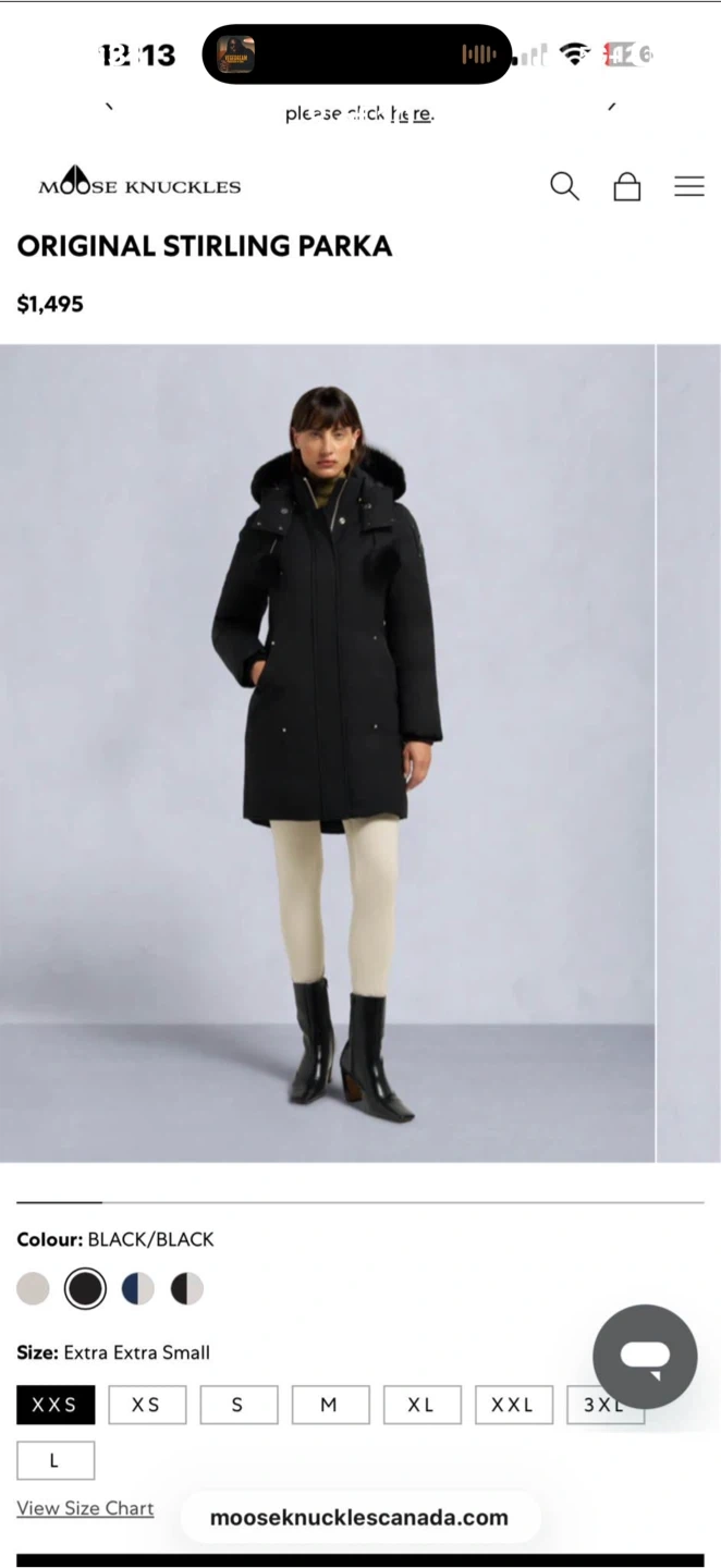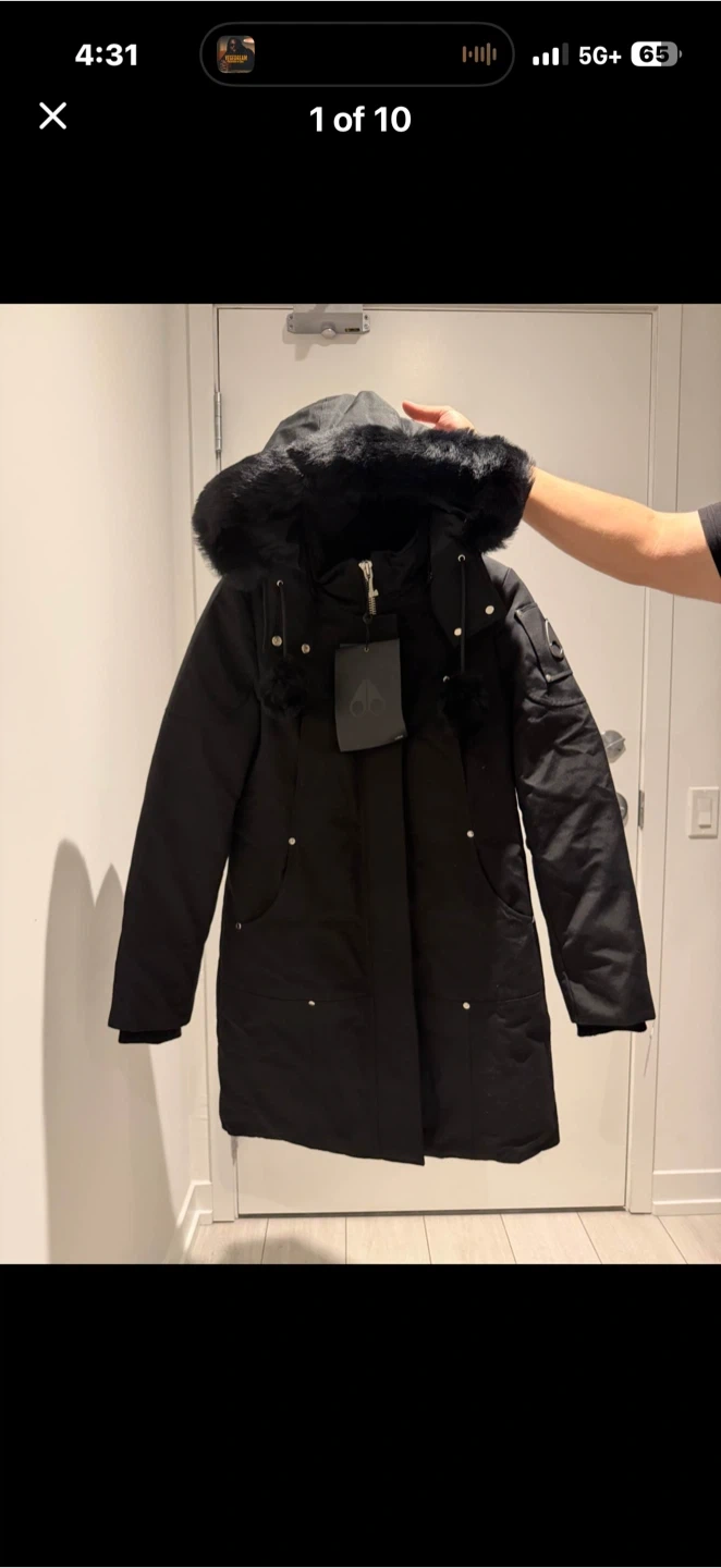 Selling a Moose Knuckles Stirling Parka in black, size Medium This stylish and warm parka is perfect for the Canadian winter. It features a fur-trimmed hood and the iconic Moose Knuckles logo on the sleeve. Originally bought for $1495.
