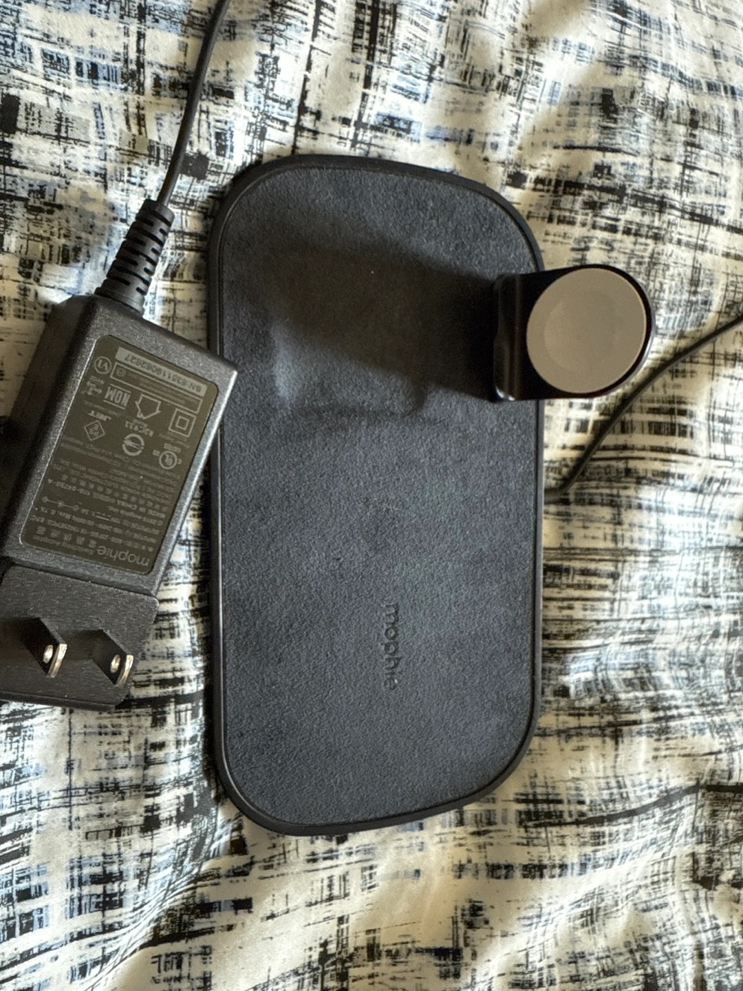 Selling a Mophie 3-in-1 wireless charging pad for your devices! It's in great condition and ready to keep your phone, watch, and earbuds powered up. This charging pad offers a convenient way to charge multiple devices at once, keeping your space tidy and organized