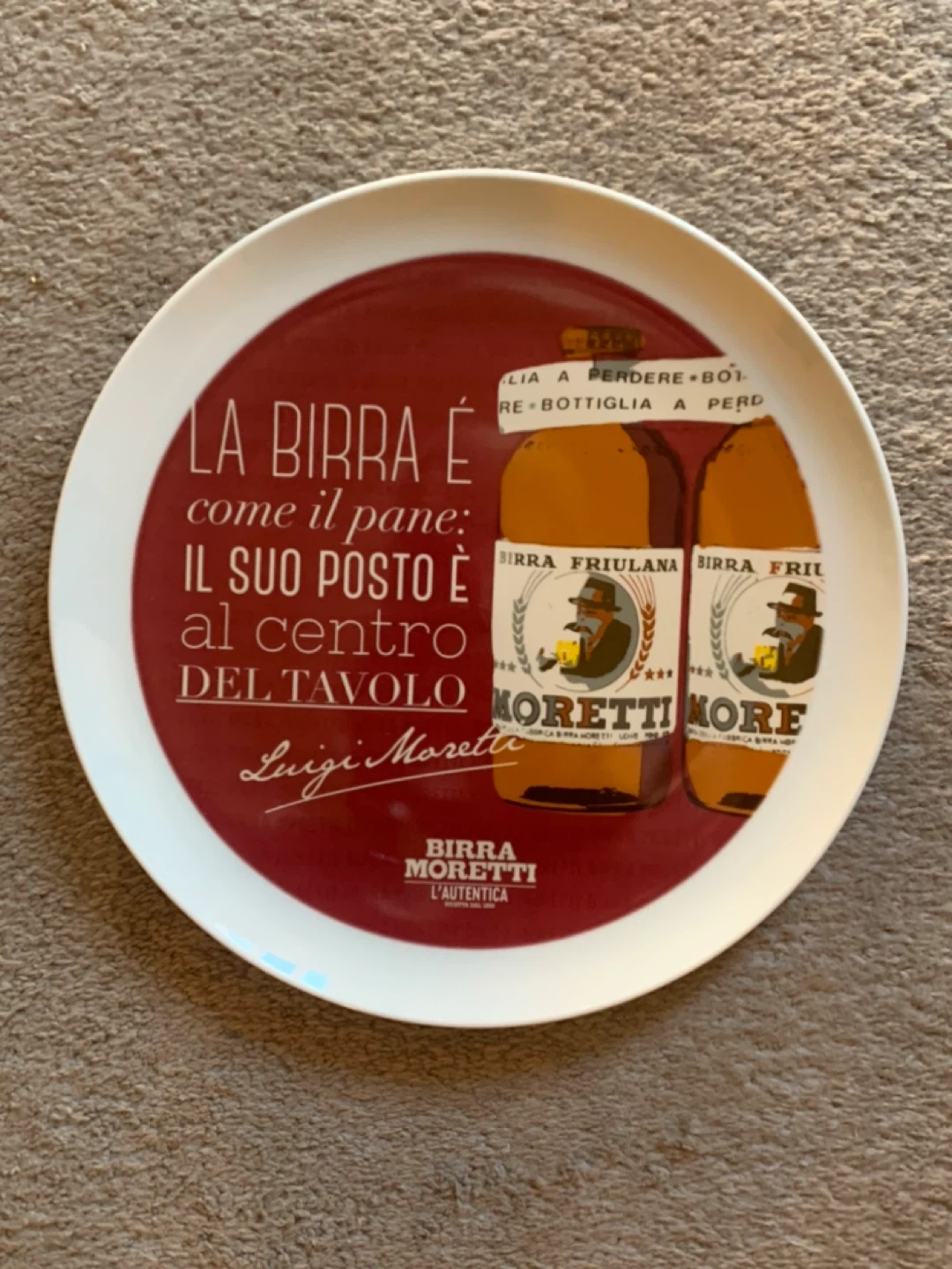 Selling a decorative Moretti Birra plate. It features a design with the Moretti logo and beer bottles. Great for adding a touch of Italian flair to your home!