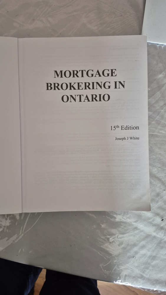 Selling a used copy of Mortgage Brokering in Ontario, 15th Edition by Joseph J White. It's in good condition and perfect for anyone studying for their mortgage broker license in Ontario. Highlight the important points for exam. Cash only please.