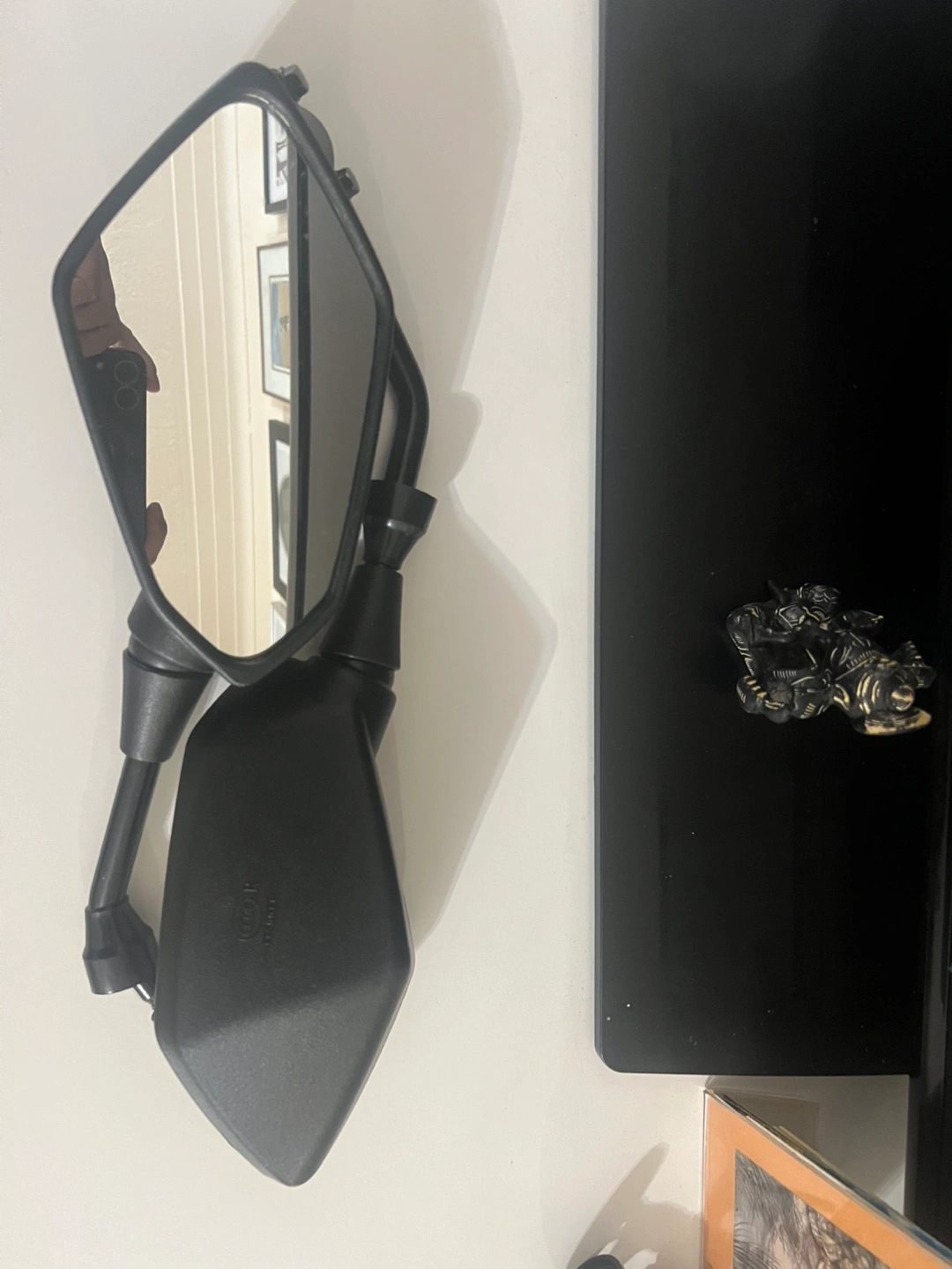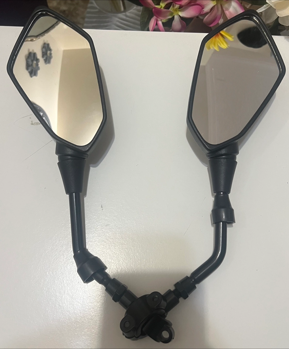Selling a pair of motorcycle mirrors in black. They appear to be in good condition and ready to be installed on your bike!