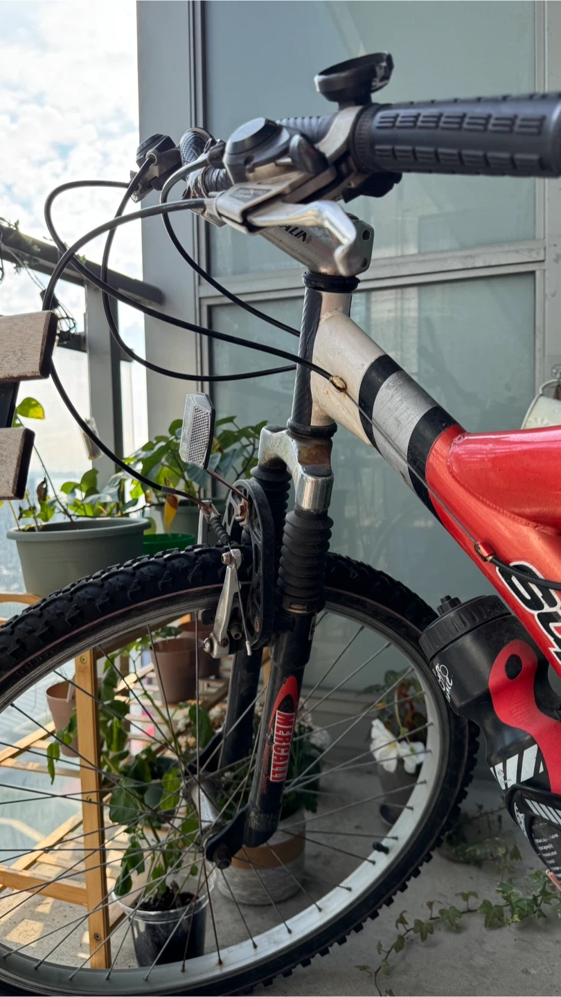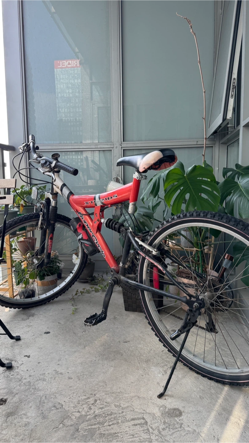 Selling my XTI-21DS bike with dual suspension. It's red and black. Perfect for getting around town or hitting some trails