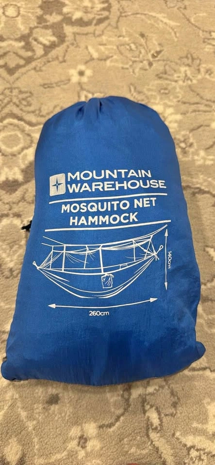 Mountain Warehouse hammock with built-in mosquito net. Size: 260cm x 140cm. Lightweight, compact, and easy to set up β perfect for camping, backpacking, or lounging outdoors while staying bug-free. Comes with its own carry bag. Excellent condition. π Pick up at 16th & Kingsway.
