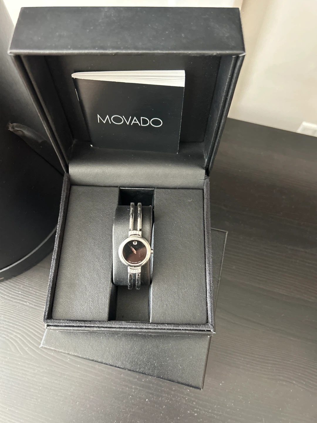 Selling a Movado women's bangle watch. It's in like-new condition and comes with the original box and instructions. A beautiful and classic timepiece!