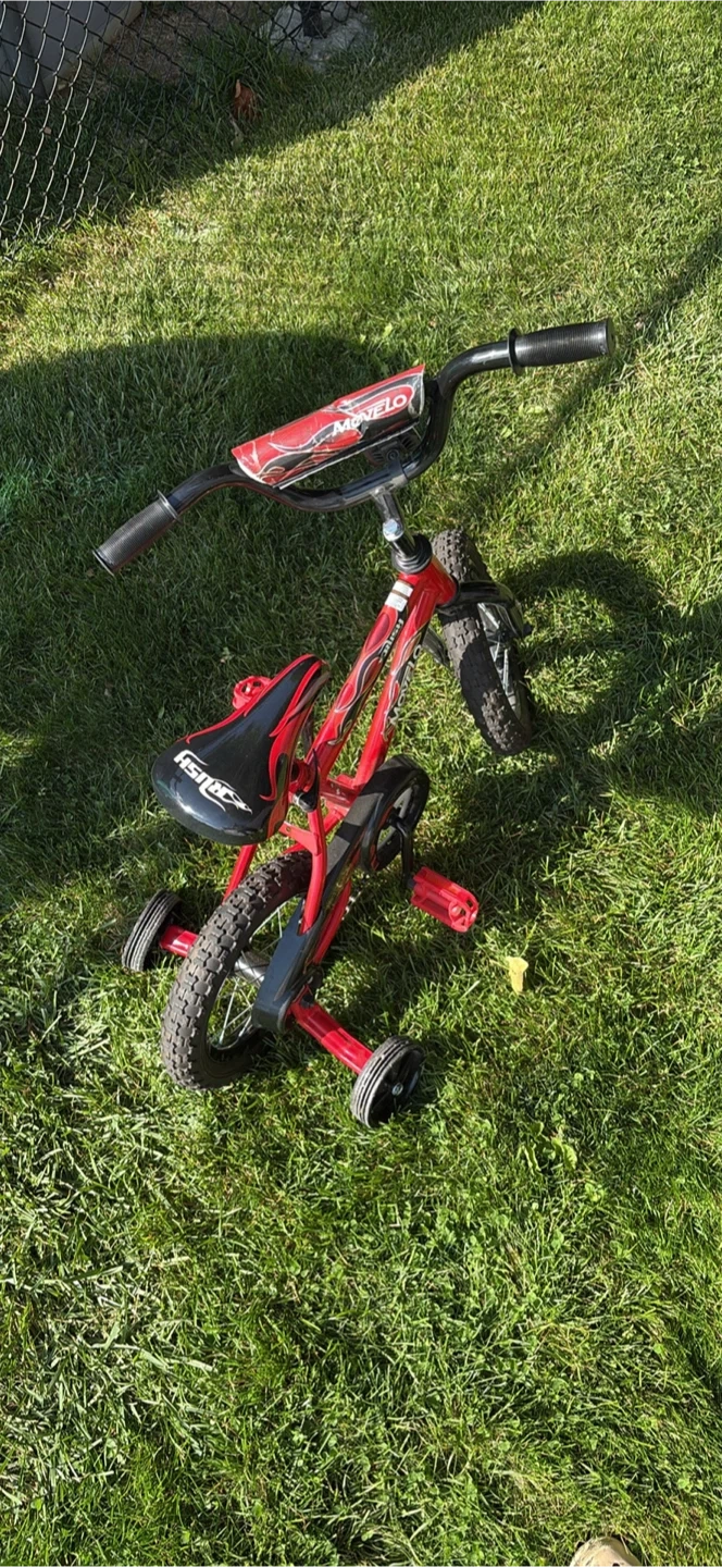 Movelo Red & Black Kids Bike with training wheels ( 12 1/2” ) Pick up in Tottenham SD