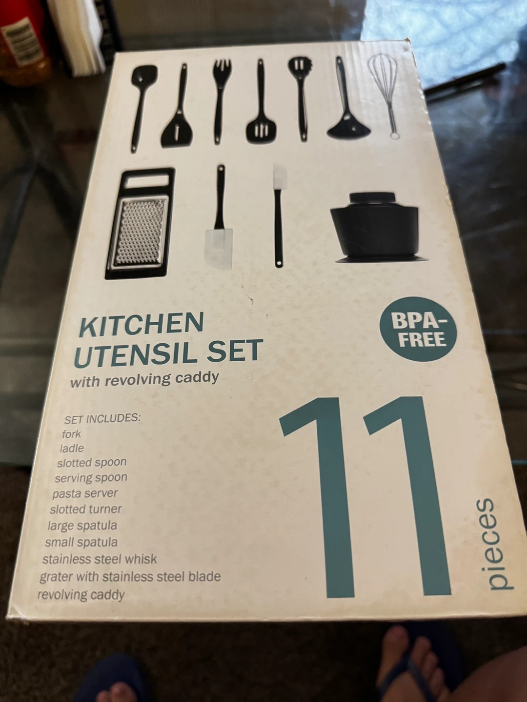 Includes kitchen utensil set with the items listed in on the box!