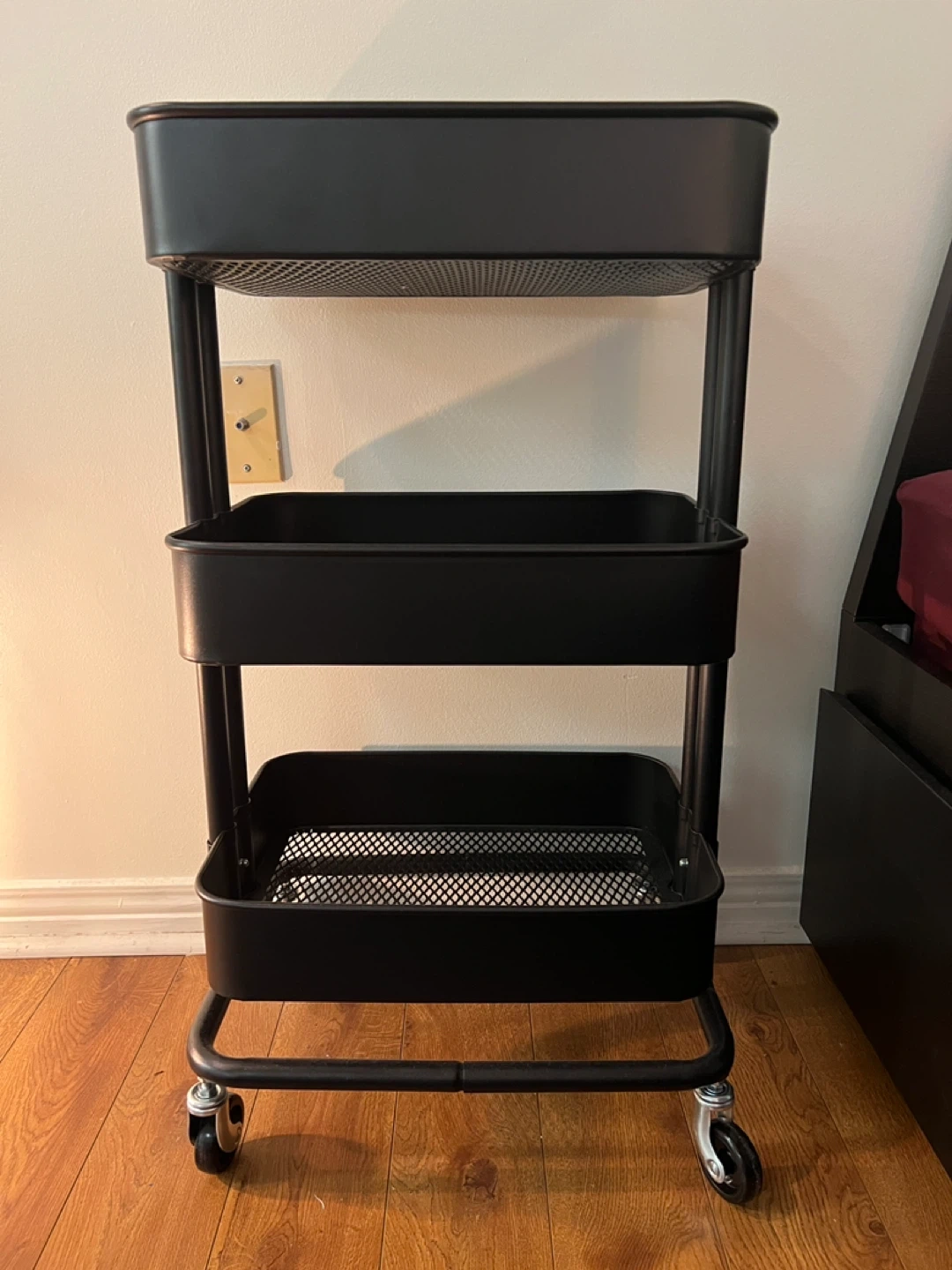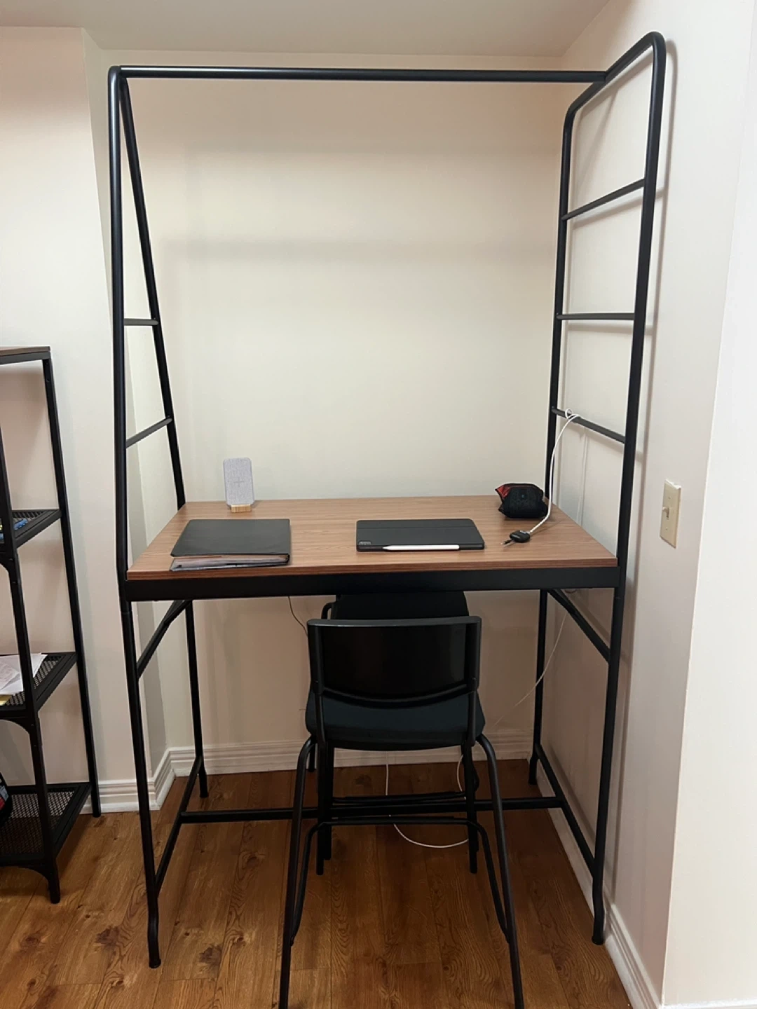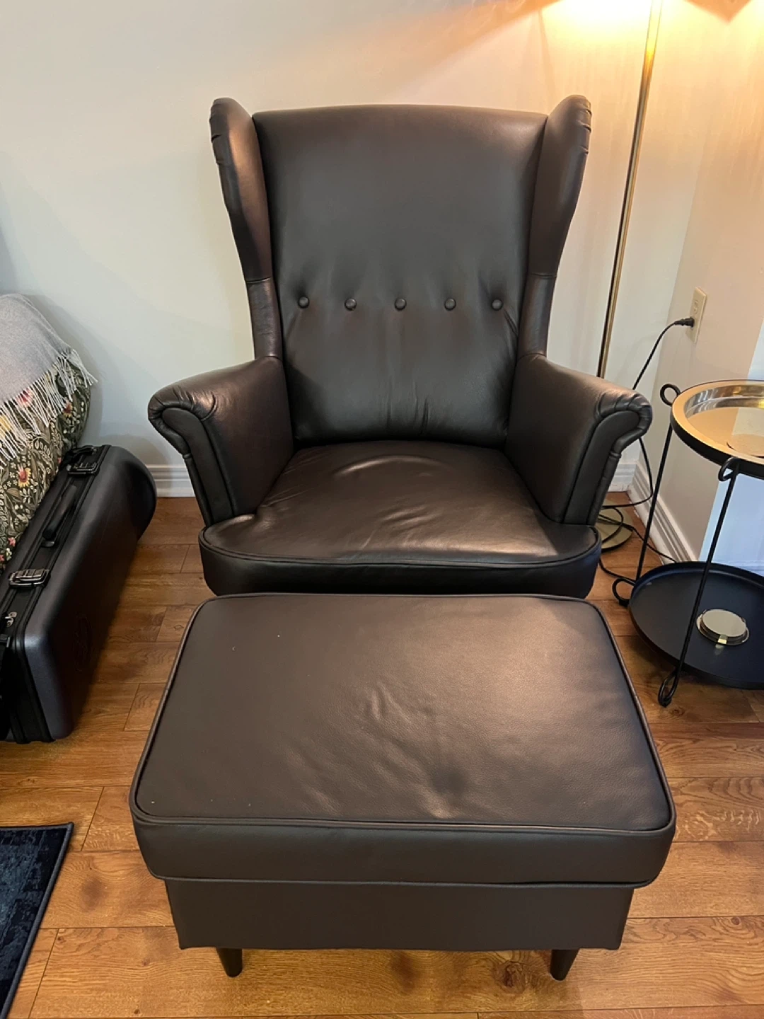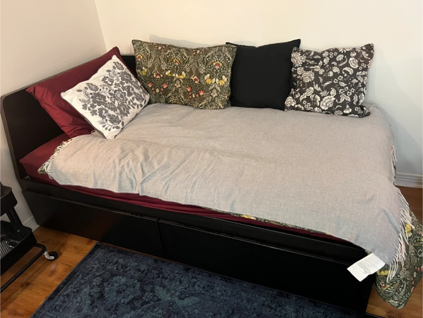 Various IKEA items purchased in August 2024, lightly used: - Flekke twin daybed with two Vannareid firm mattresses, pulls out into Queen bed (includes linens, pillows, and cushions) - Strandmon brown leather armchair and footstool - Haverud table with two Stig stools - Fjallbo shelf units (one tall, one short) - Nymo/Skaftet floor lamp - Raskog utility cart - Mulig laundry drying rack - Trixig screwdriver/drill - Livelycke tray table - Majgull green blackout curtains (unopened package) - Vesken cart - Danby 0.7 cu ft black microwave (Costco) Take everything for $1300, or make me an offer on individual items. Must pick up, St. Lawrence Market area.