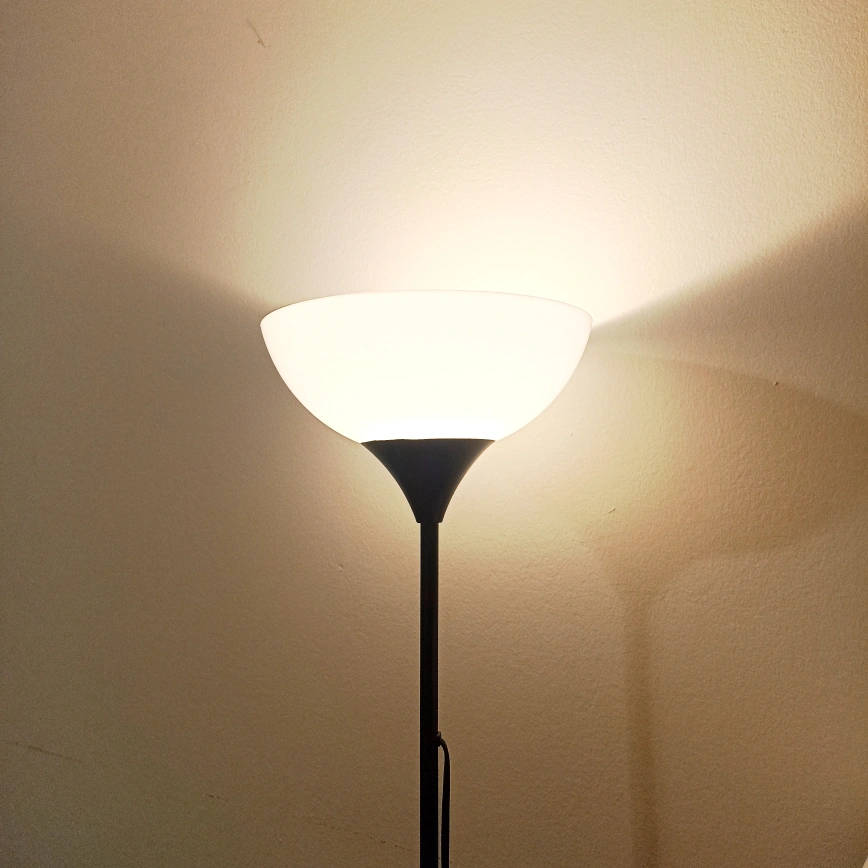 ❤🔥Selling 2 IKEA standing floor lamp with bulbs. The same design. It's perfect for adding some ambient lighting to any room. The lamp has a simple, modern design with a black stand and a white shade. Ready to brighten up your space. $10 each or $15 for 2❤🔥
